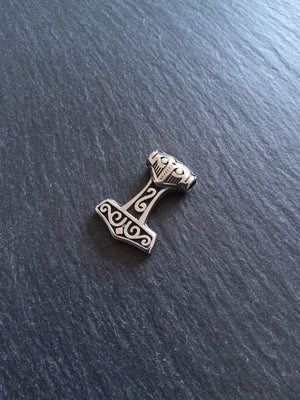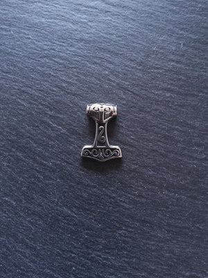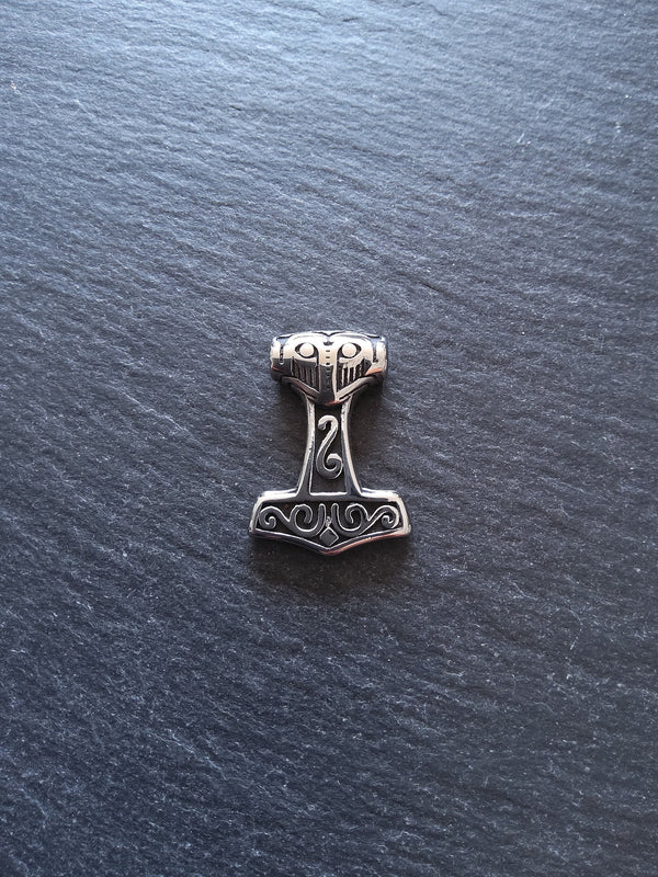 Solid & chunky 304 Stainless Steel Silver Tone Nordic Thor's Mjolnir Hammer Pendant. Double sided