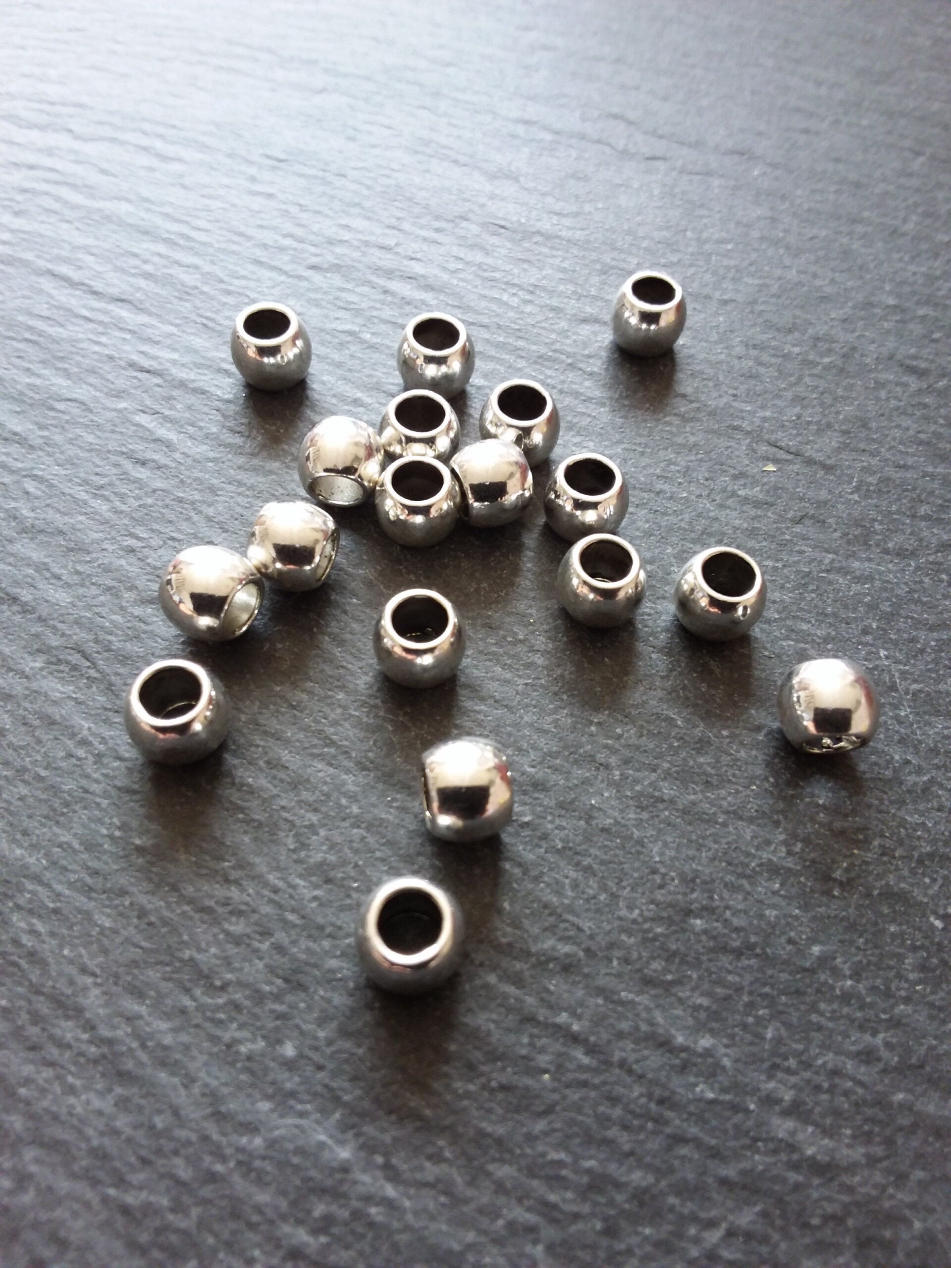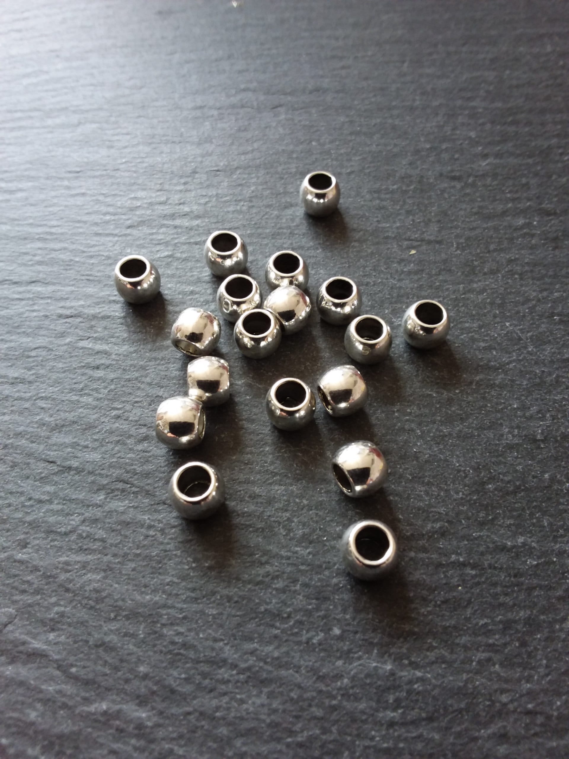 Silver Tone (not bright silver plated) zinc metal alloy barrel beads