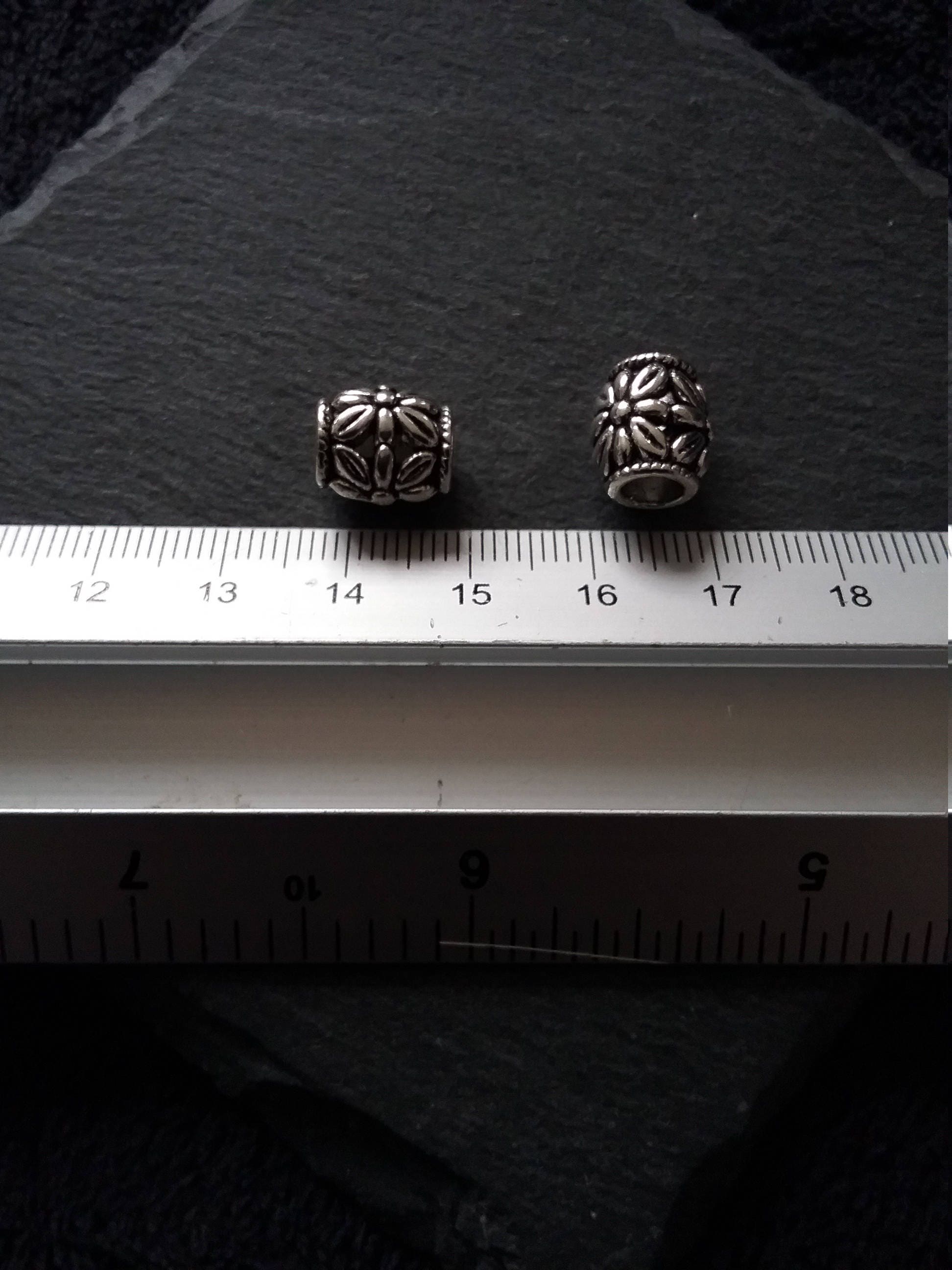 Antique Silver Tone Flower Patterned Large Hole Charm Beads. European style
