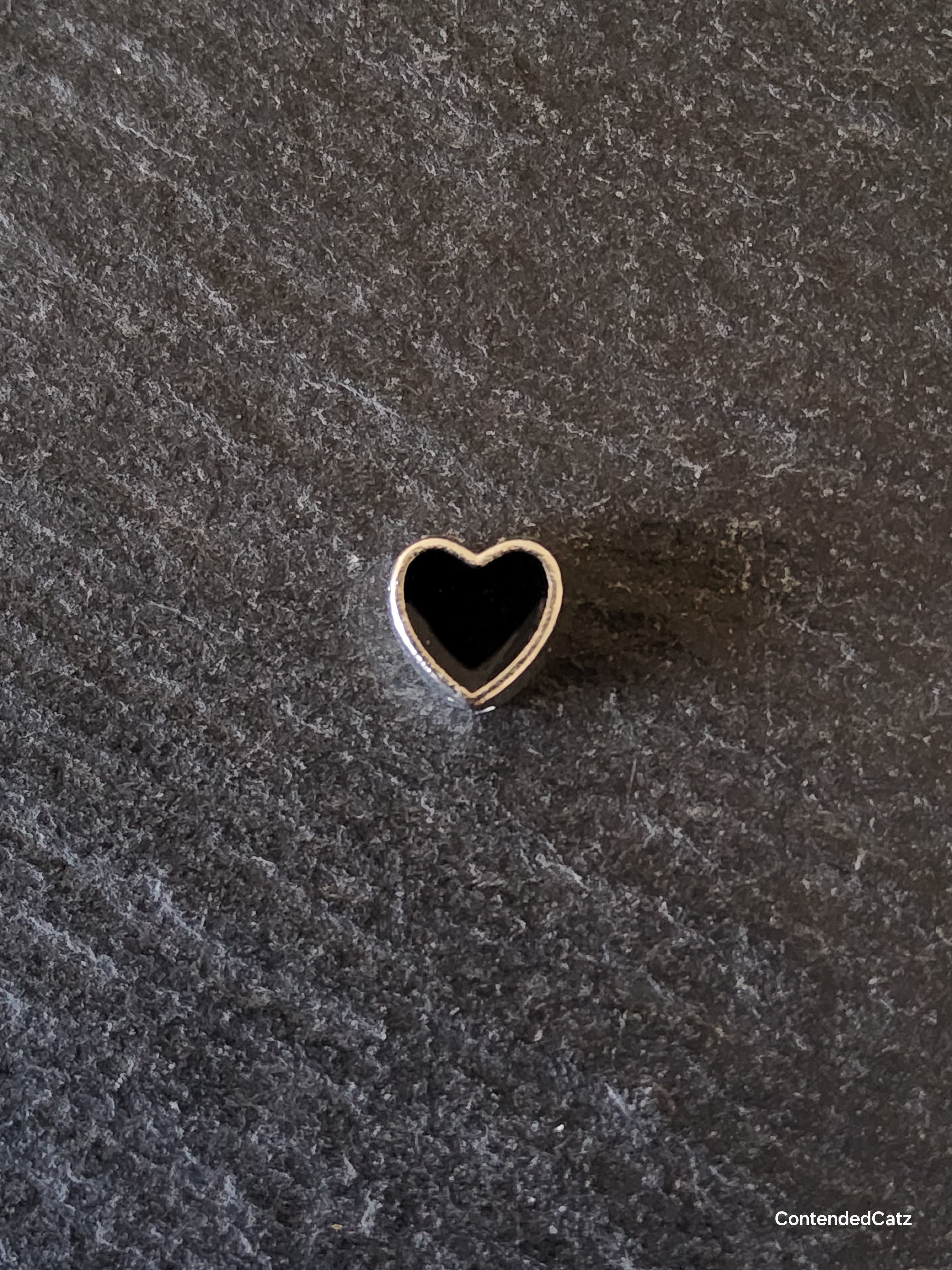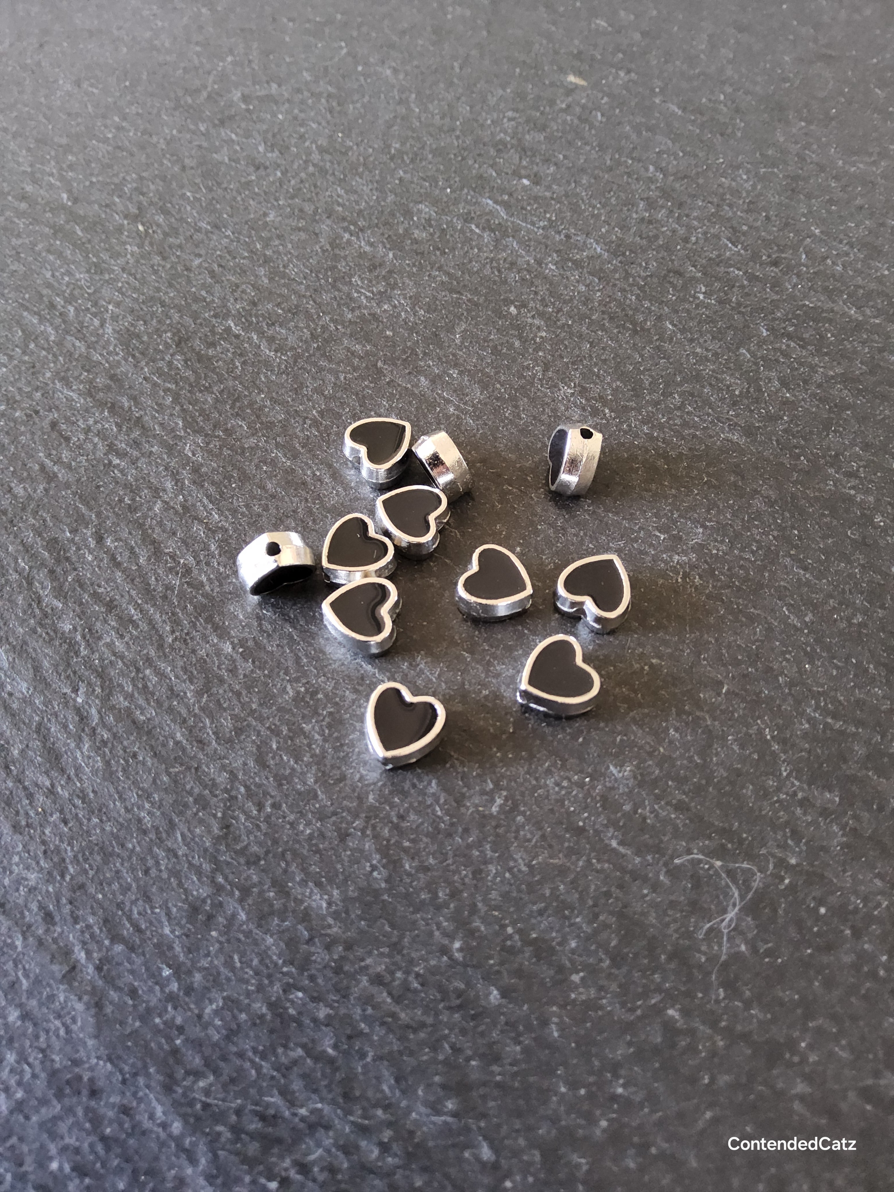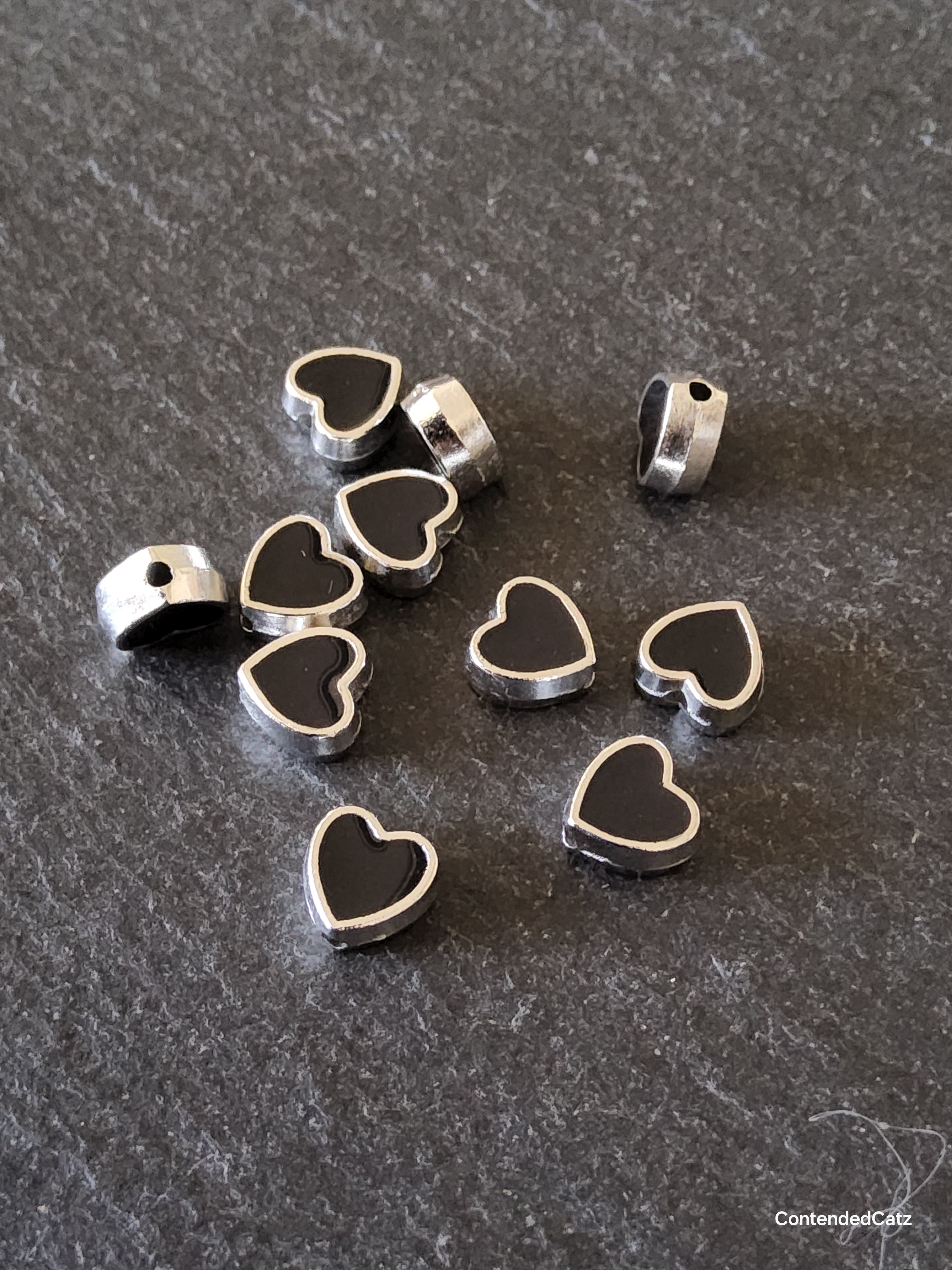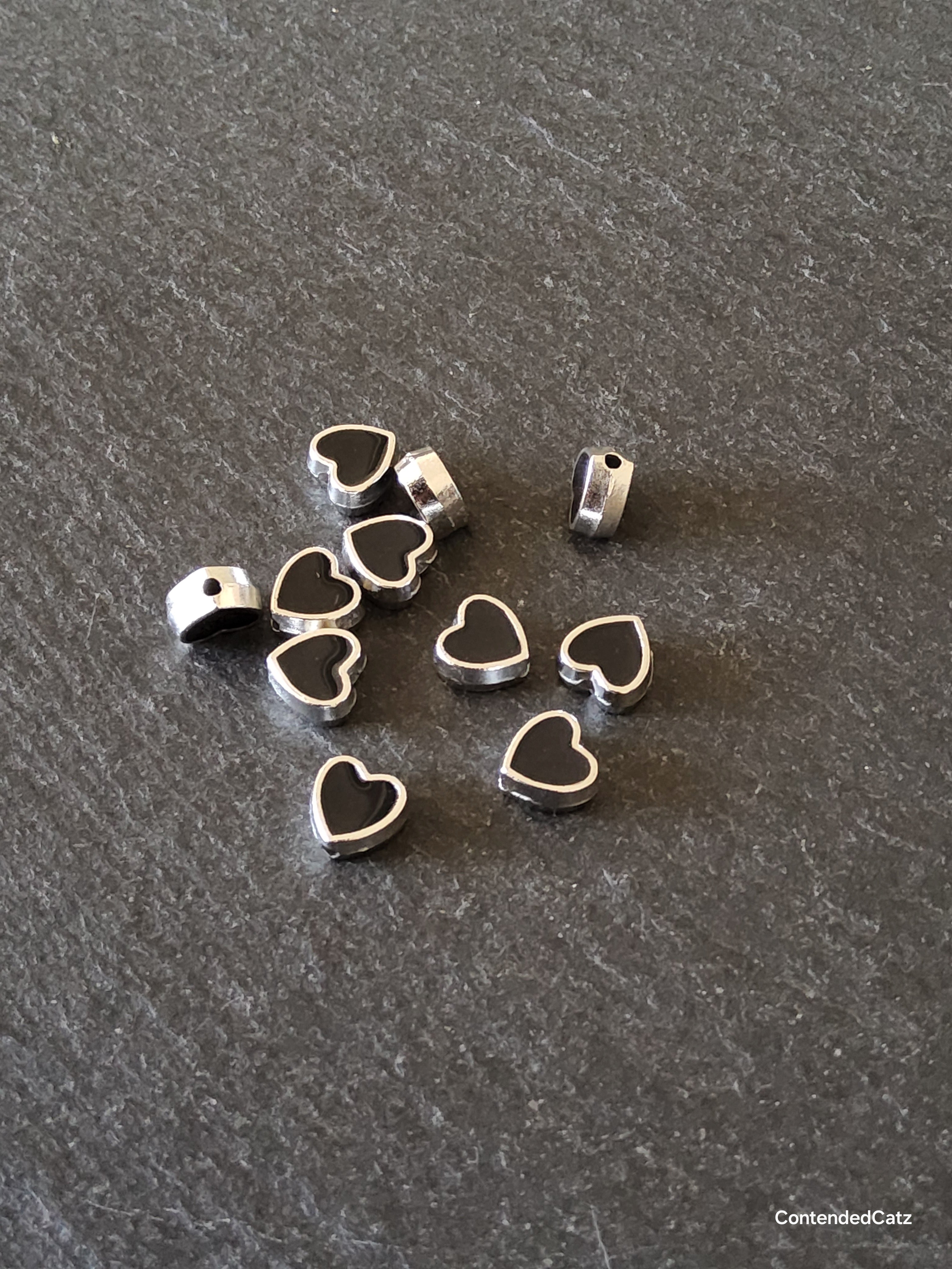 Antique silver tone black enamel heart beads