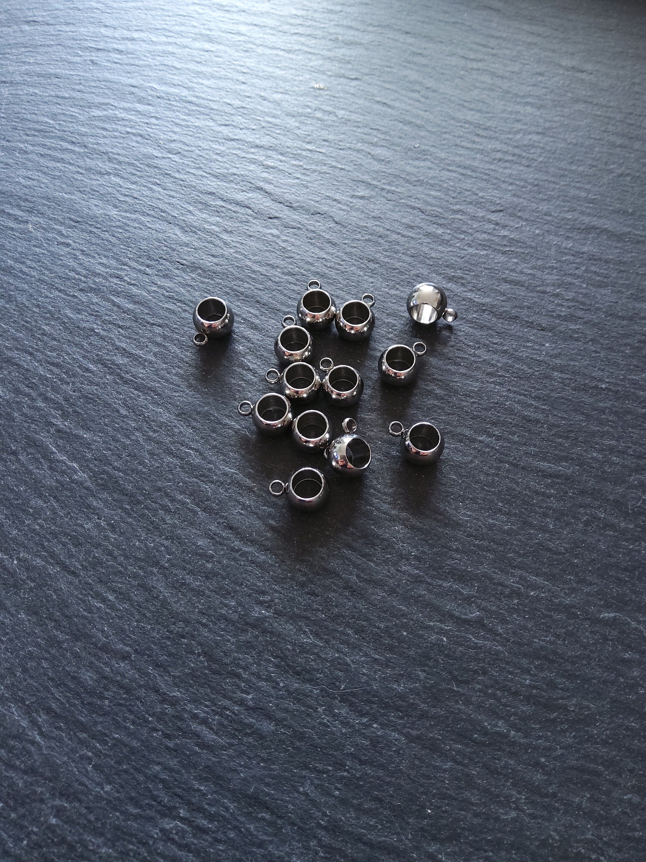 Smooth plain silver Tone 304 stainless steel hanger barrel Bail Beads