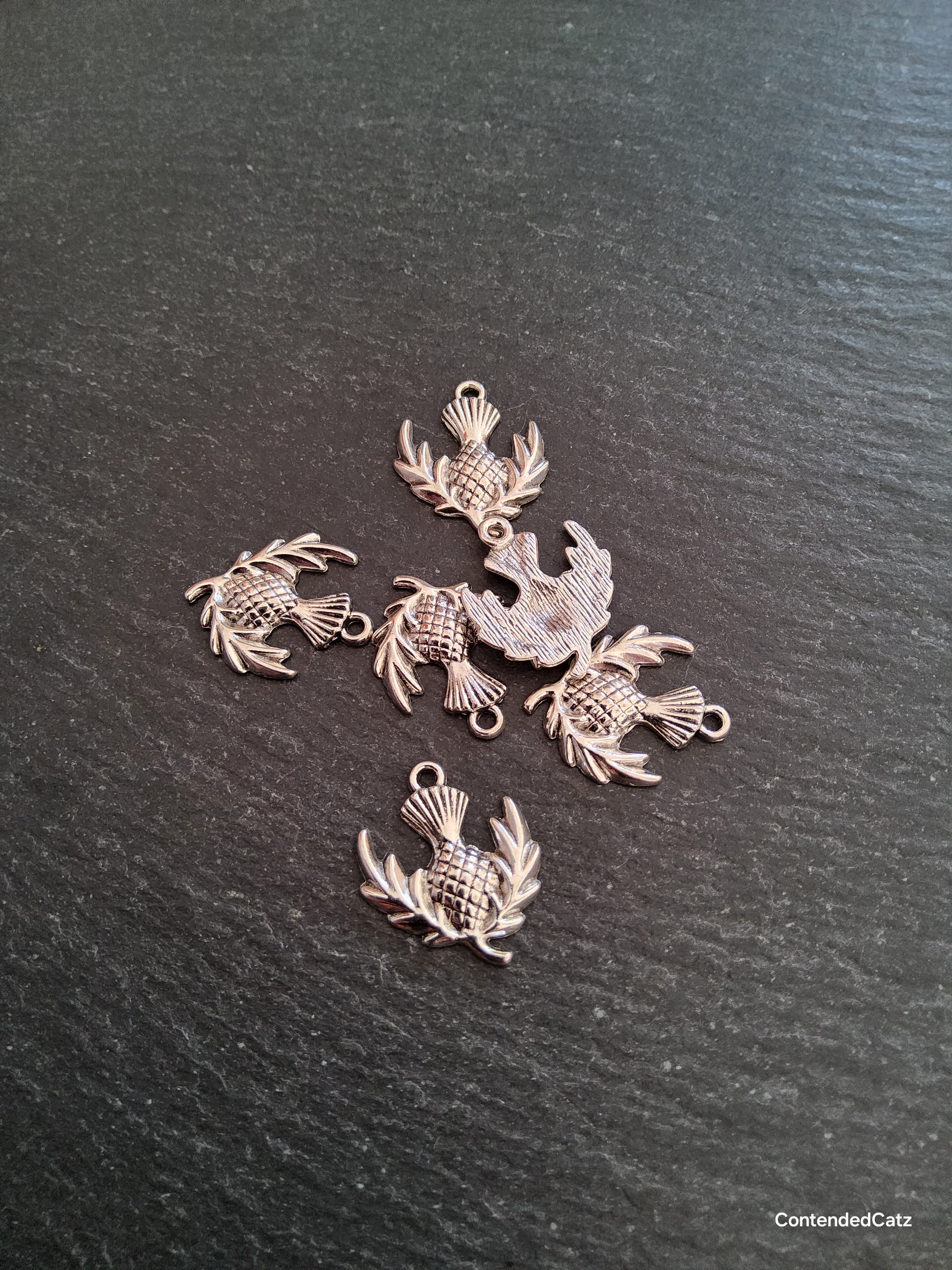 Scottish Thistle charms in antique silver tone zinc metal alloy.