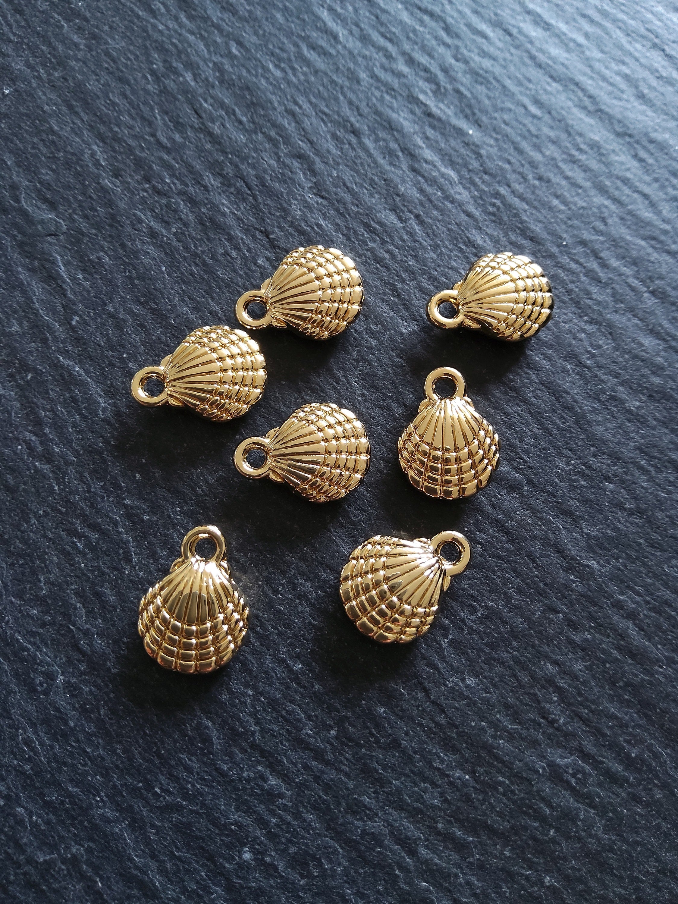 Lovely little shell scallop charms, plated in 14K genuine Gold.