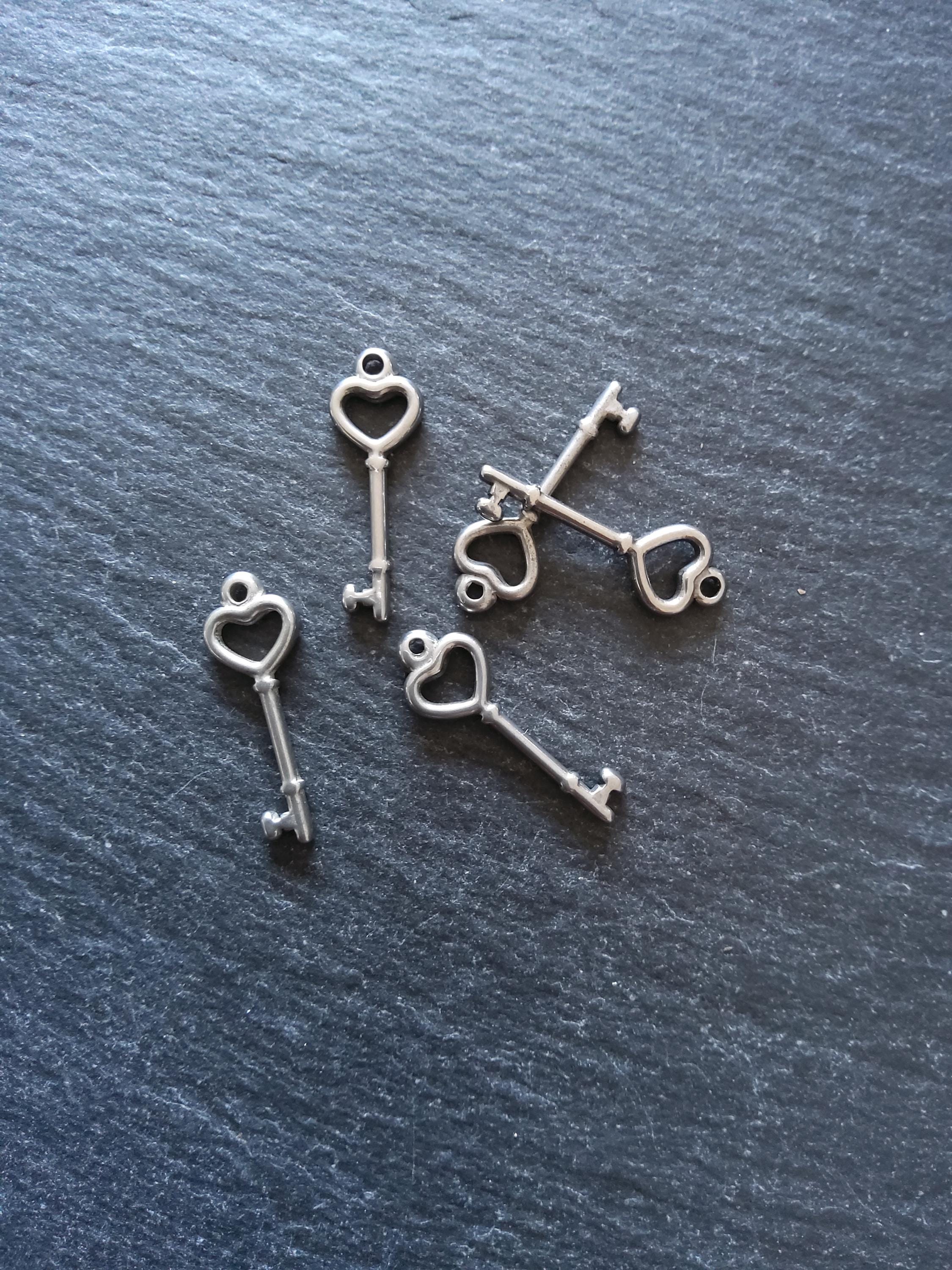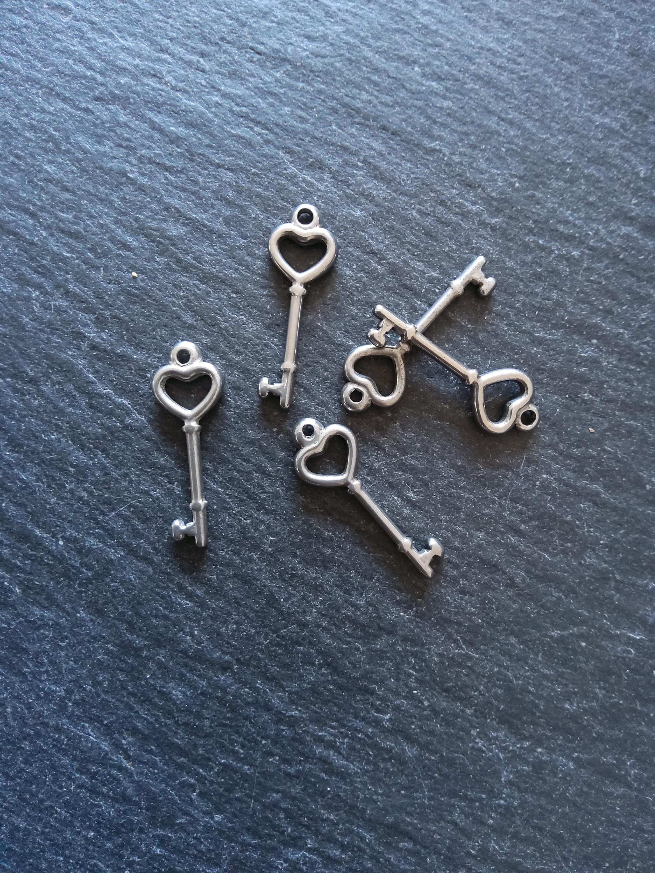 Cute little antique silver tone stainless 304 steel heart key charms.