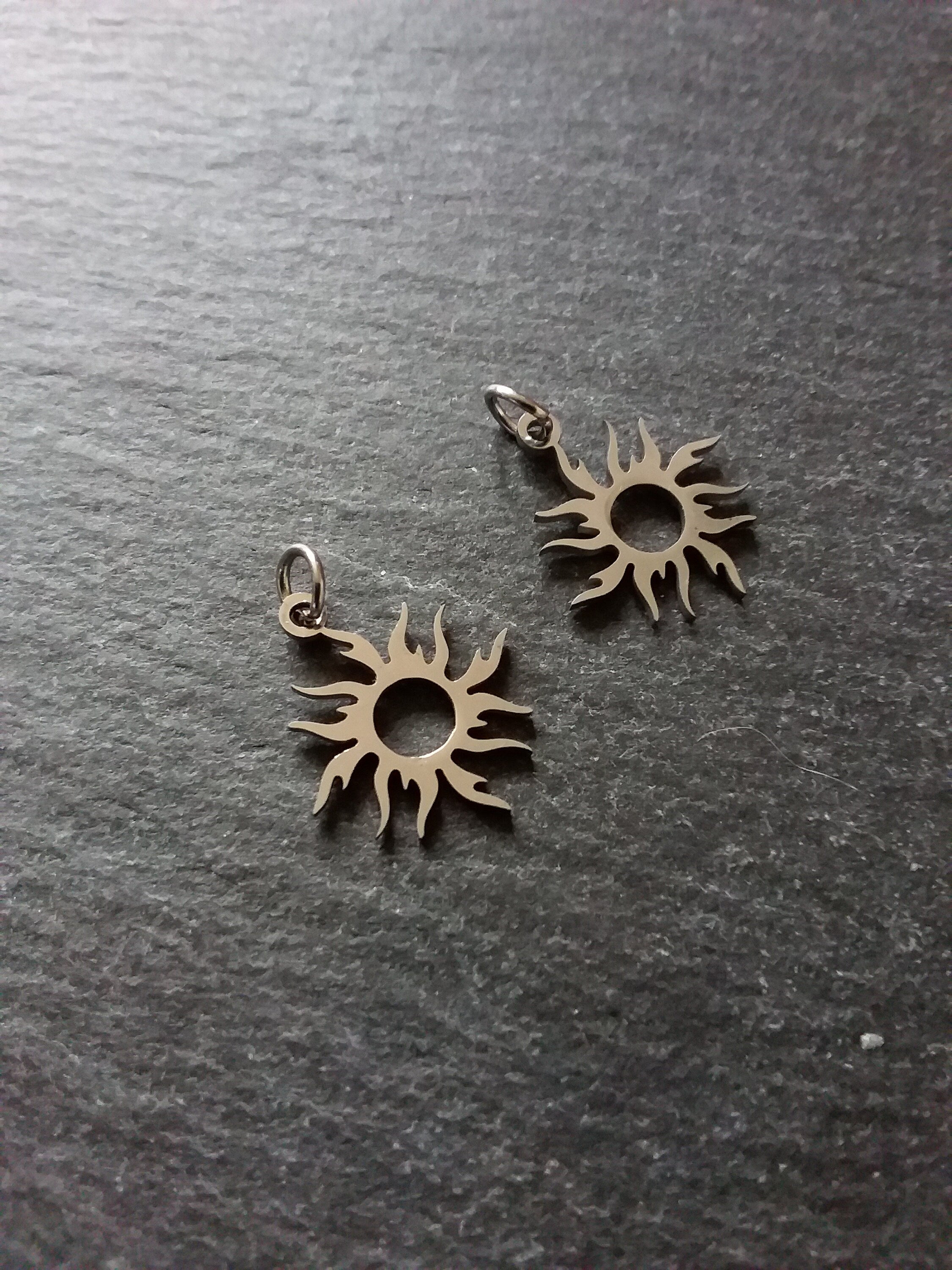 Lovely 201 Stainless Steel flat cut-out sun silhouette charms.