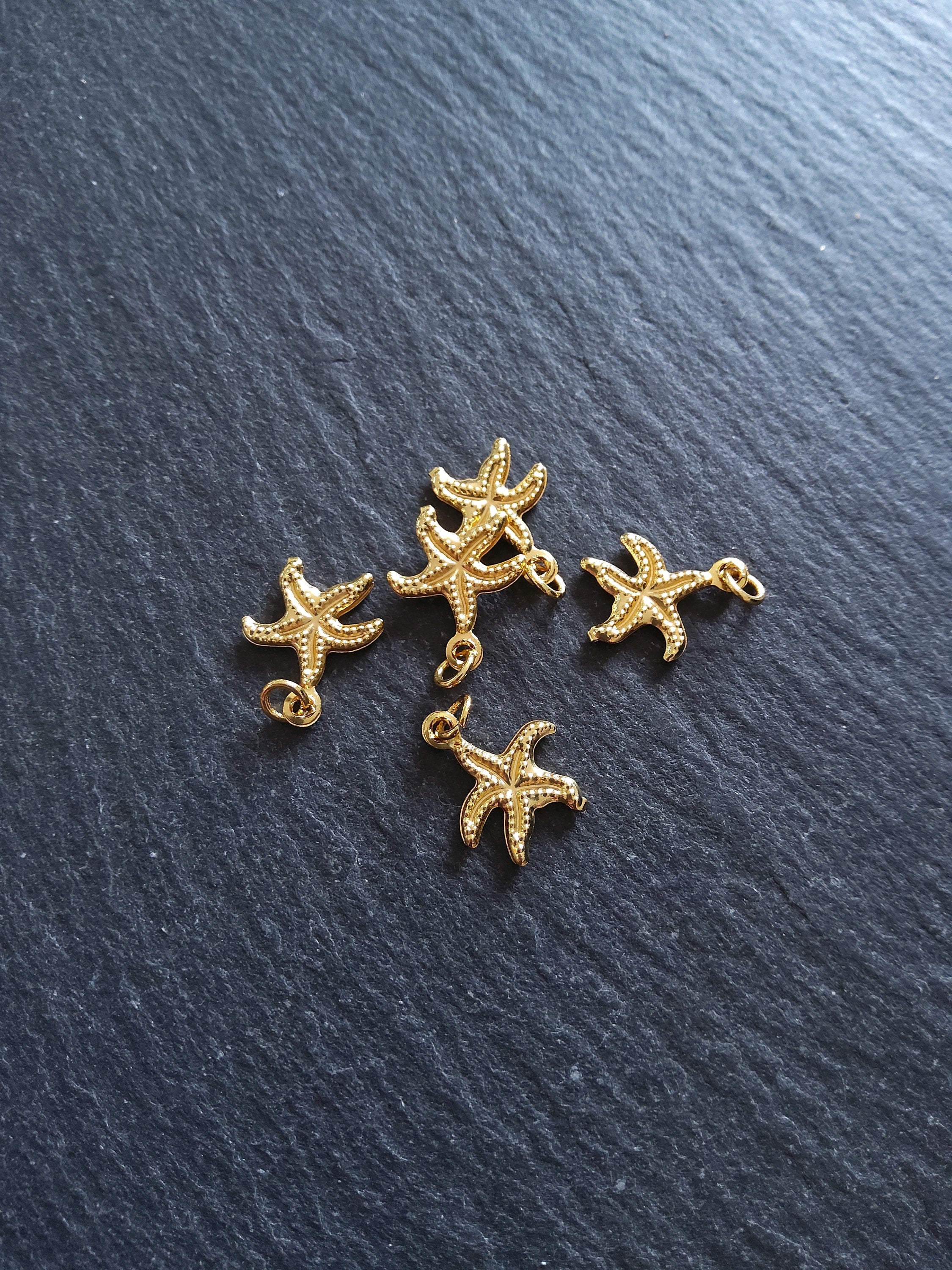 Lovely little brass starfish charms, plated in 18K genuine Gold.