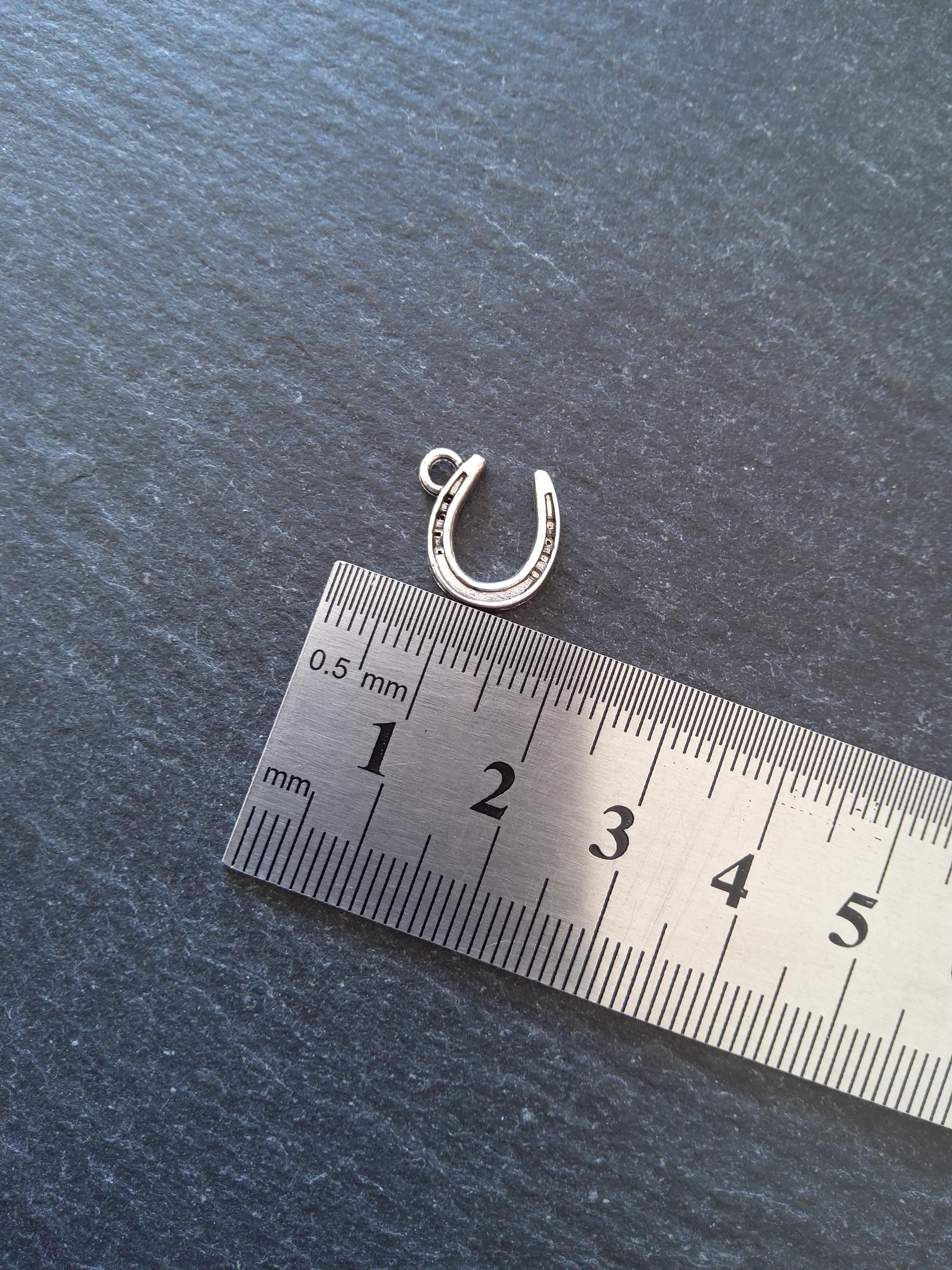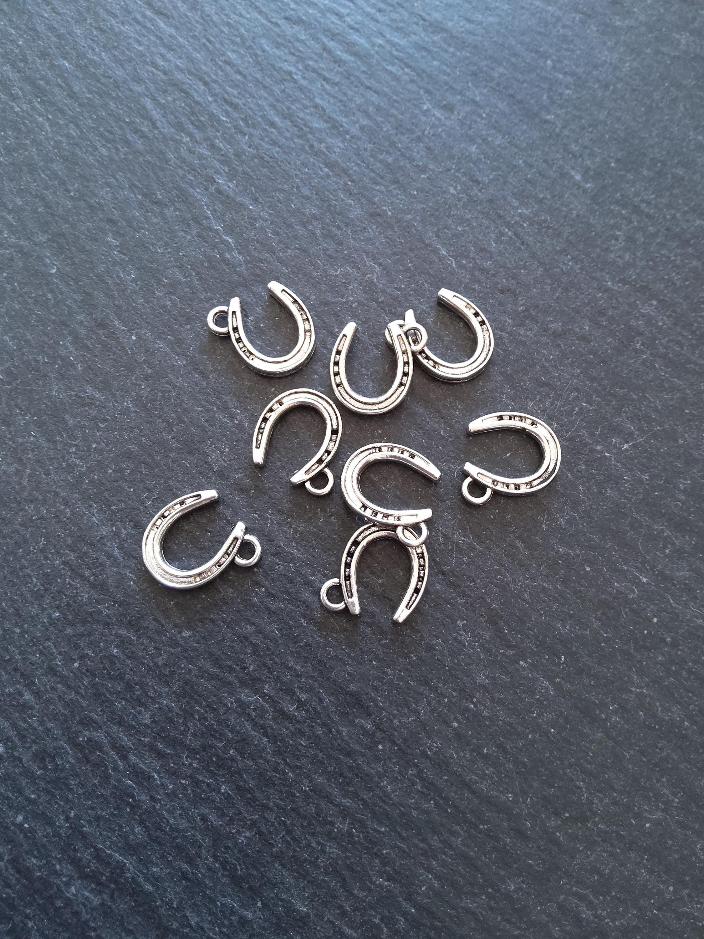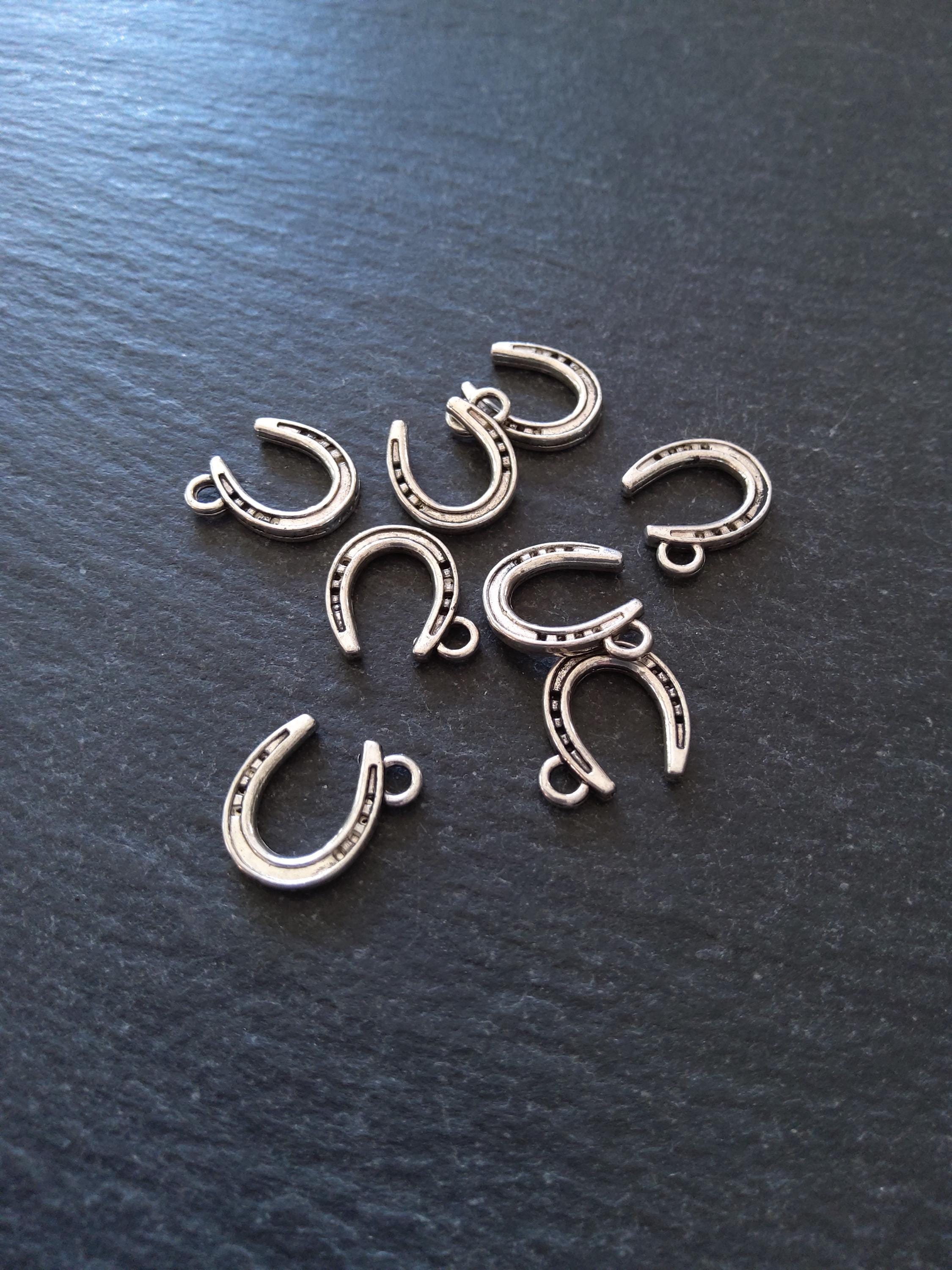 Antique silver tone zinc metal alloy lucky horseshoe charms.