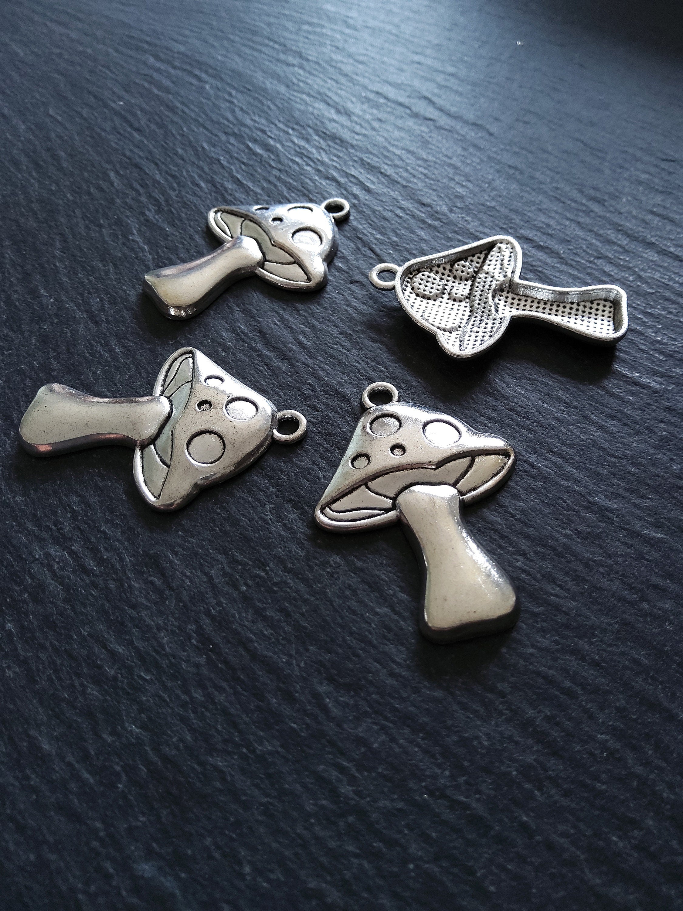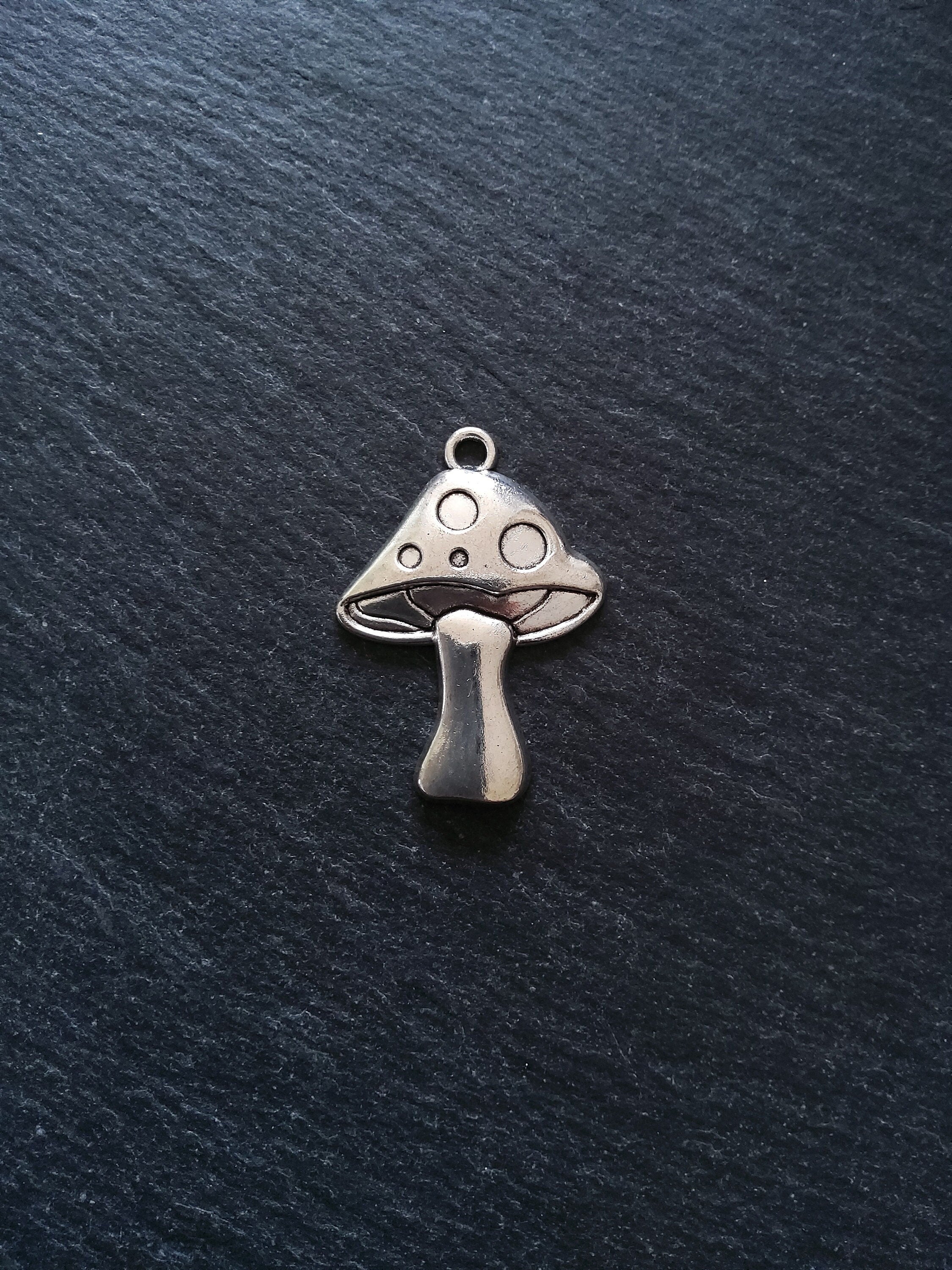 Large Spotted Mushroom Toadstool Charms in an antique silver tone zinc metal alloy.