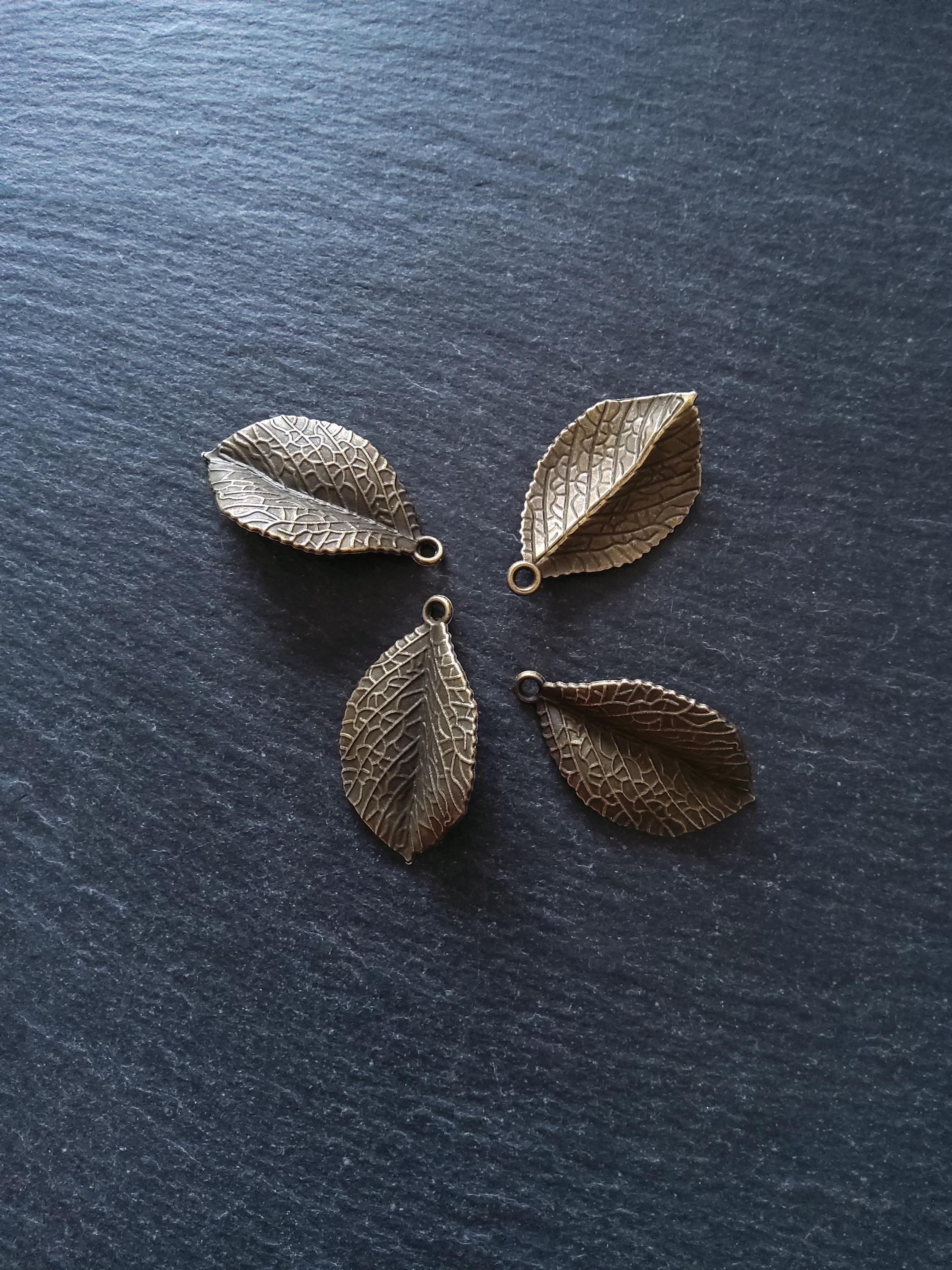 Lovely detailed antique bronze tone alloy leaf pendants.