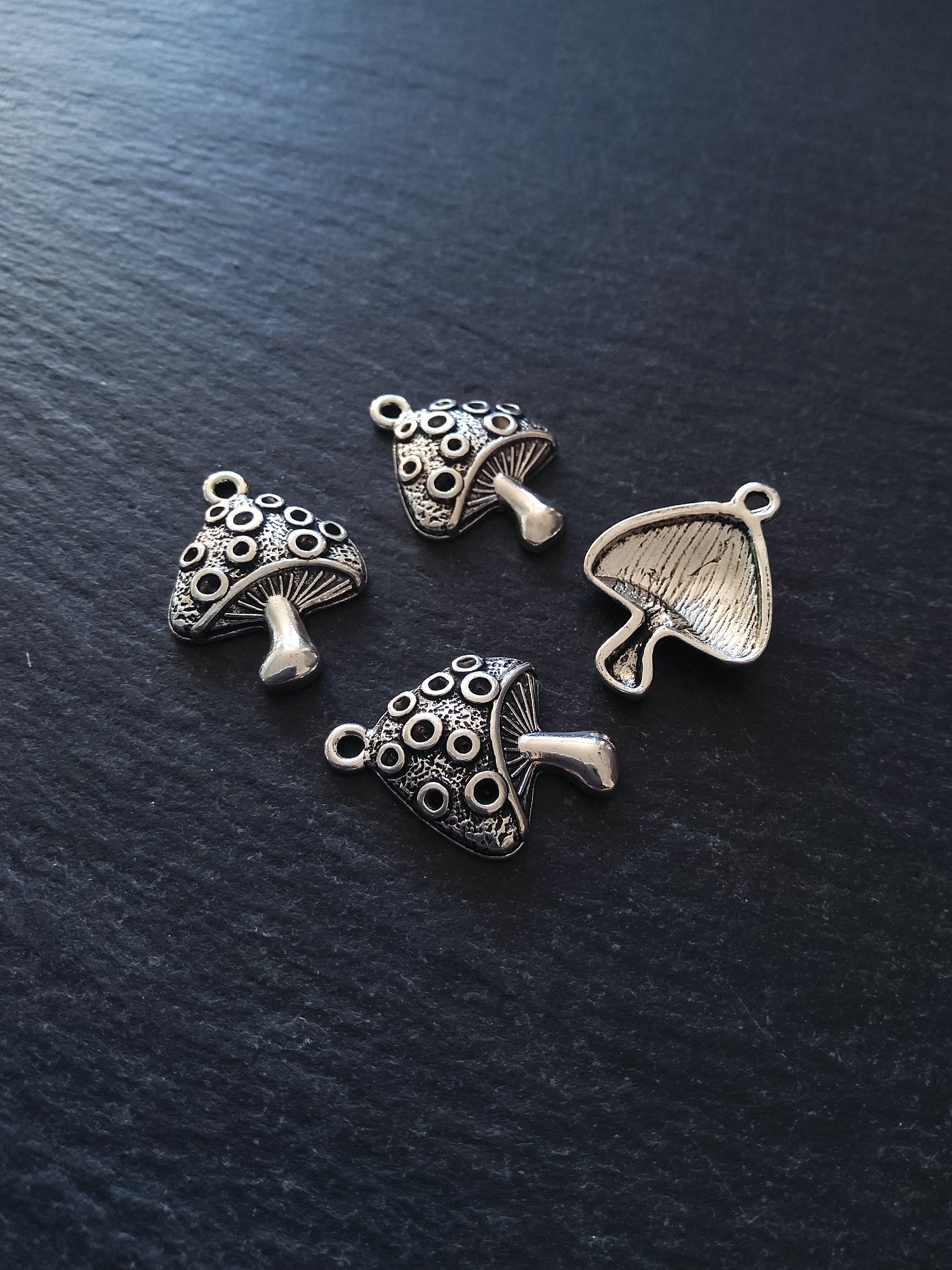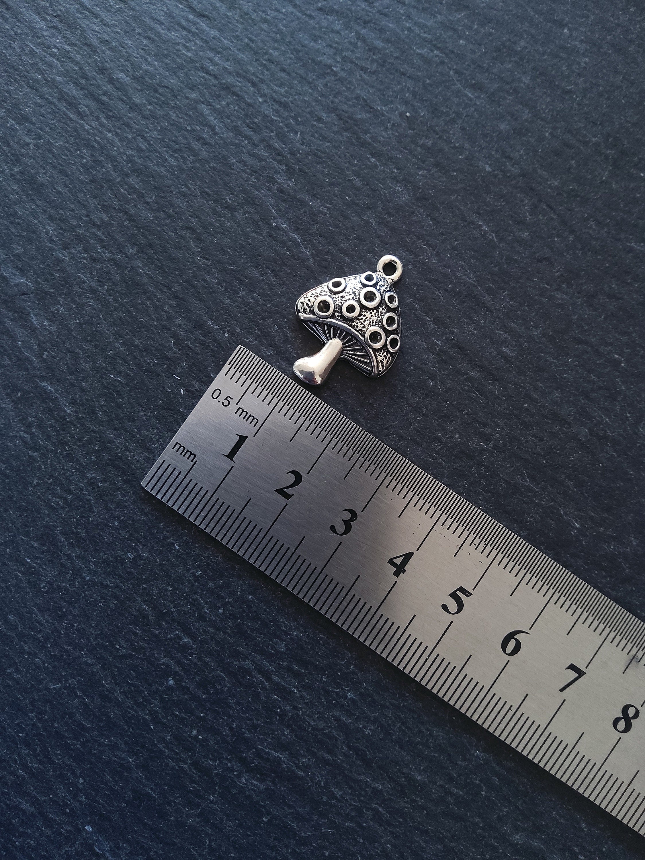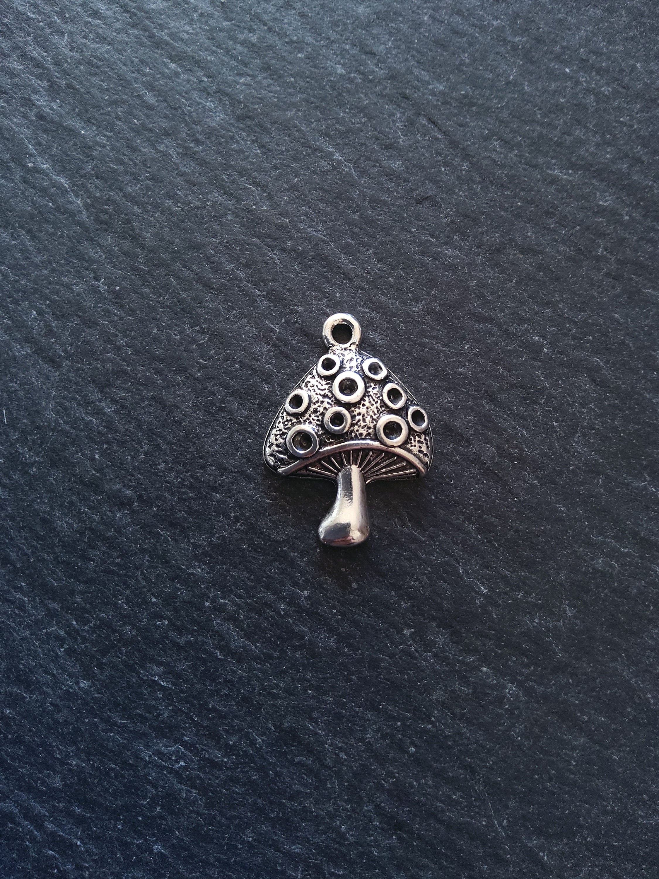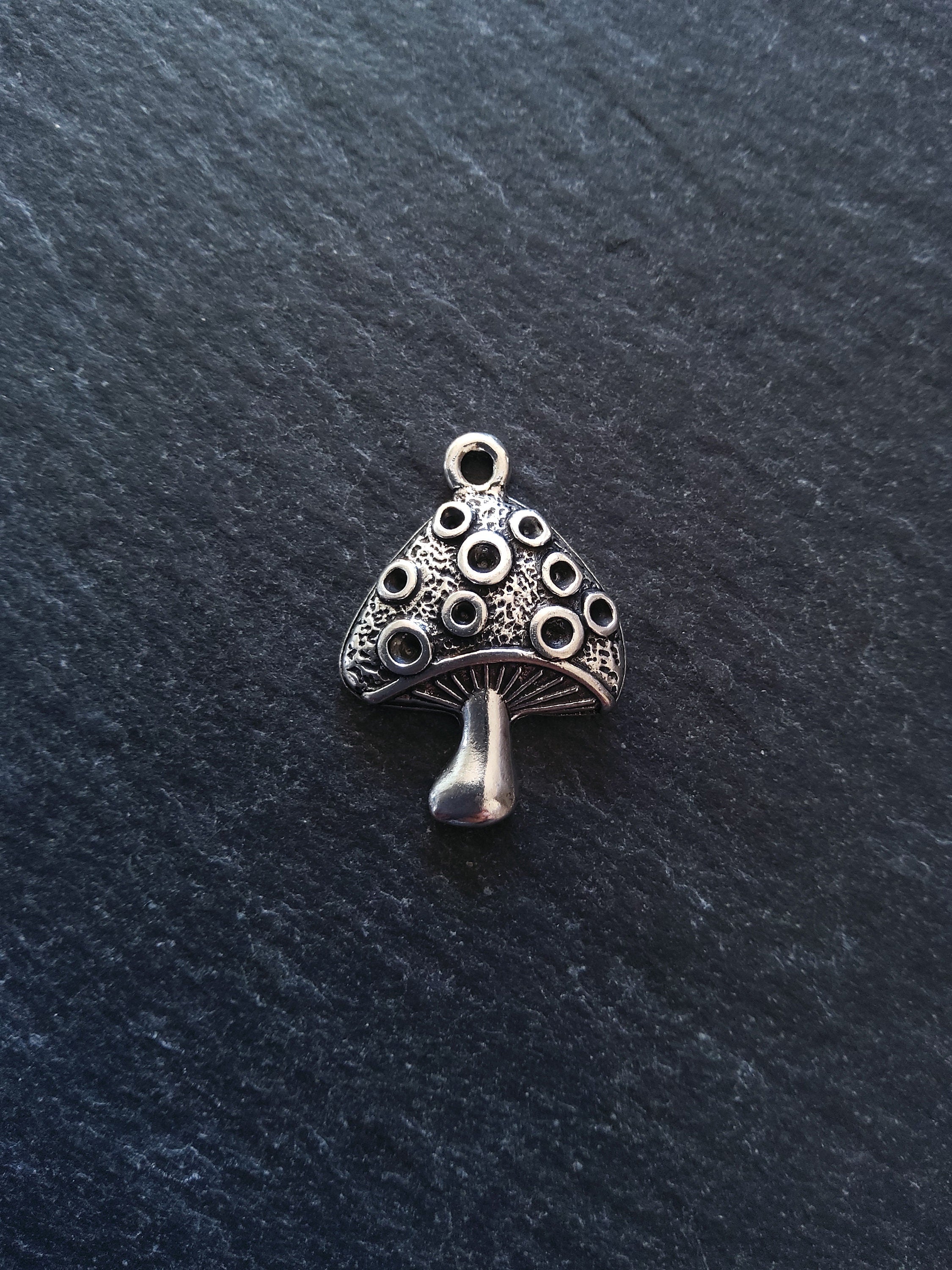 Cute Spotted Mushroom Toadstool Charms in an antique silver tone zinc metal alloy.