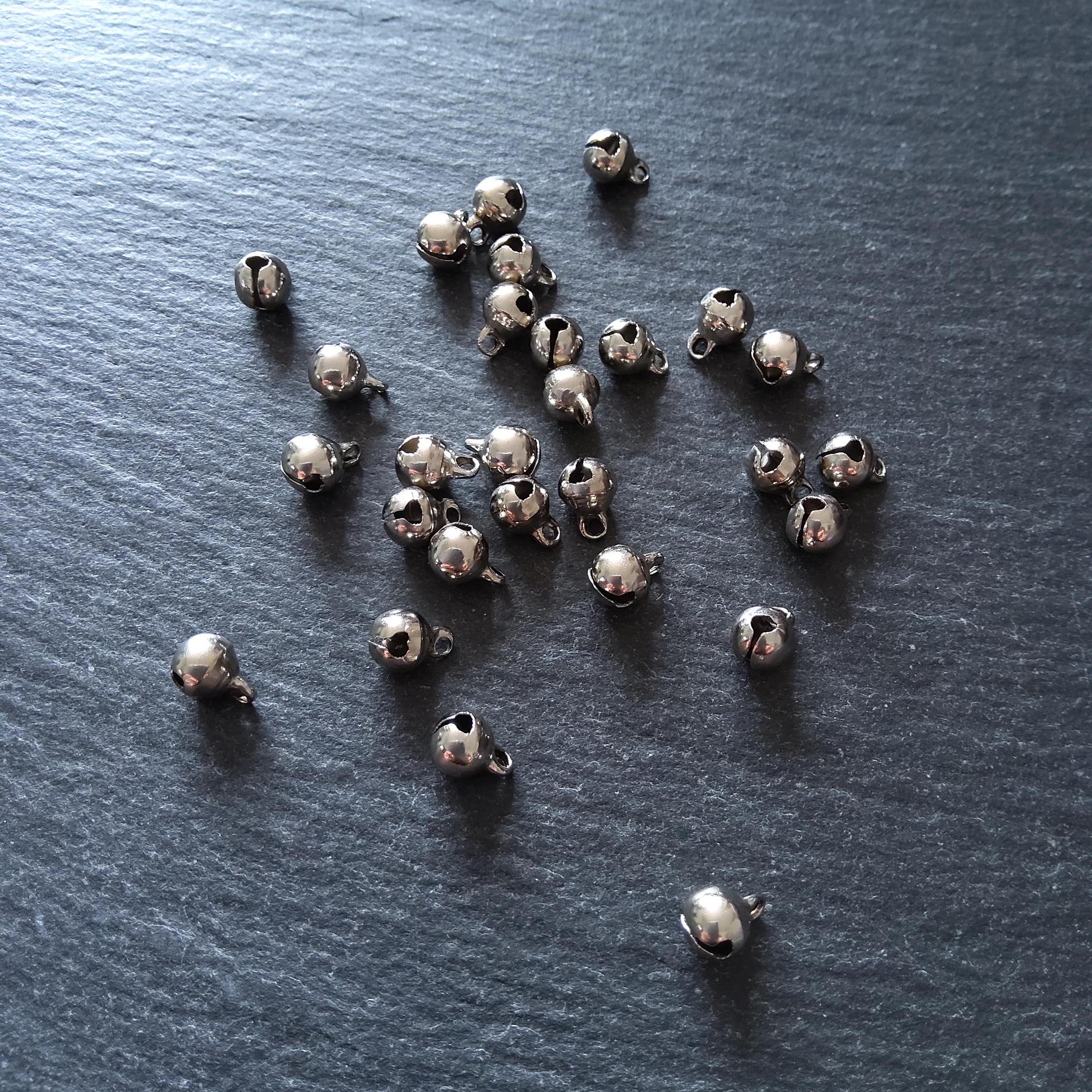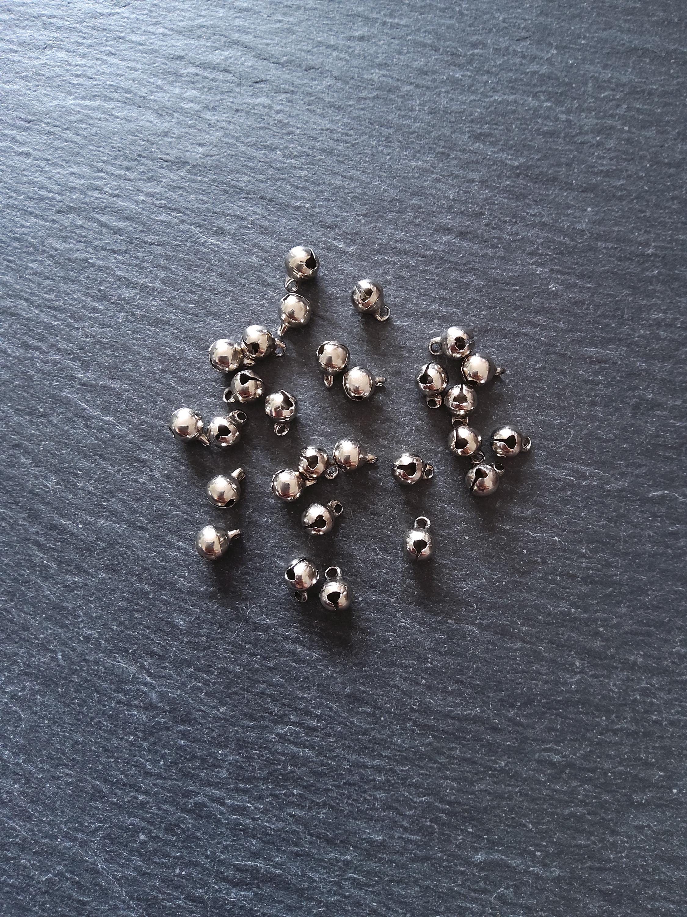 Little antique silver tone brass bell charms.