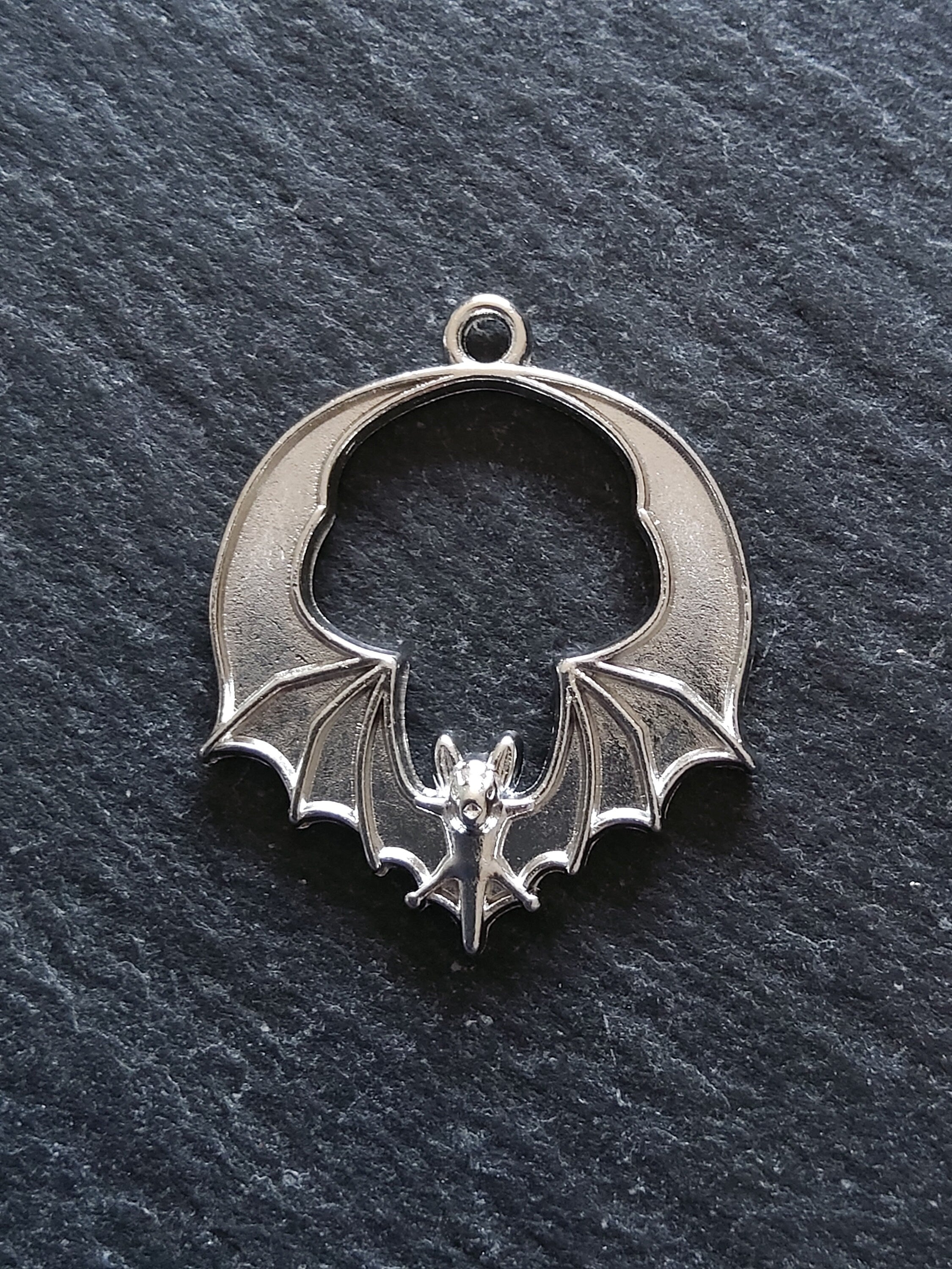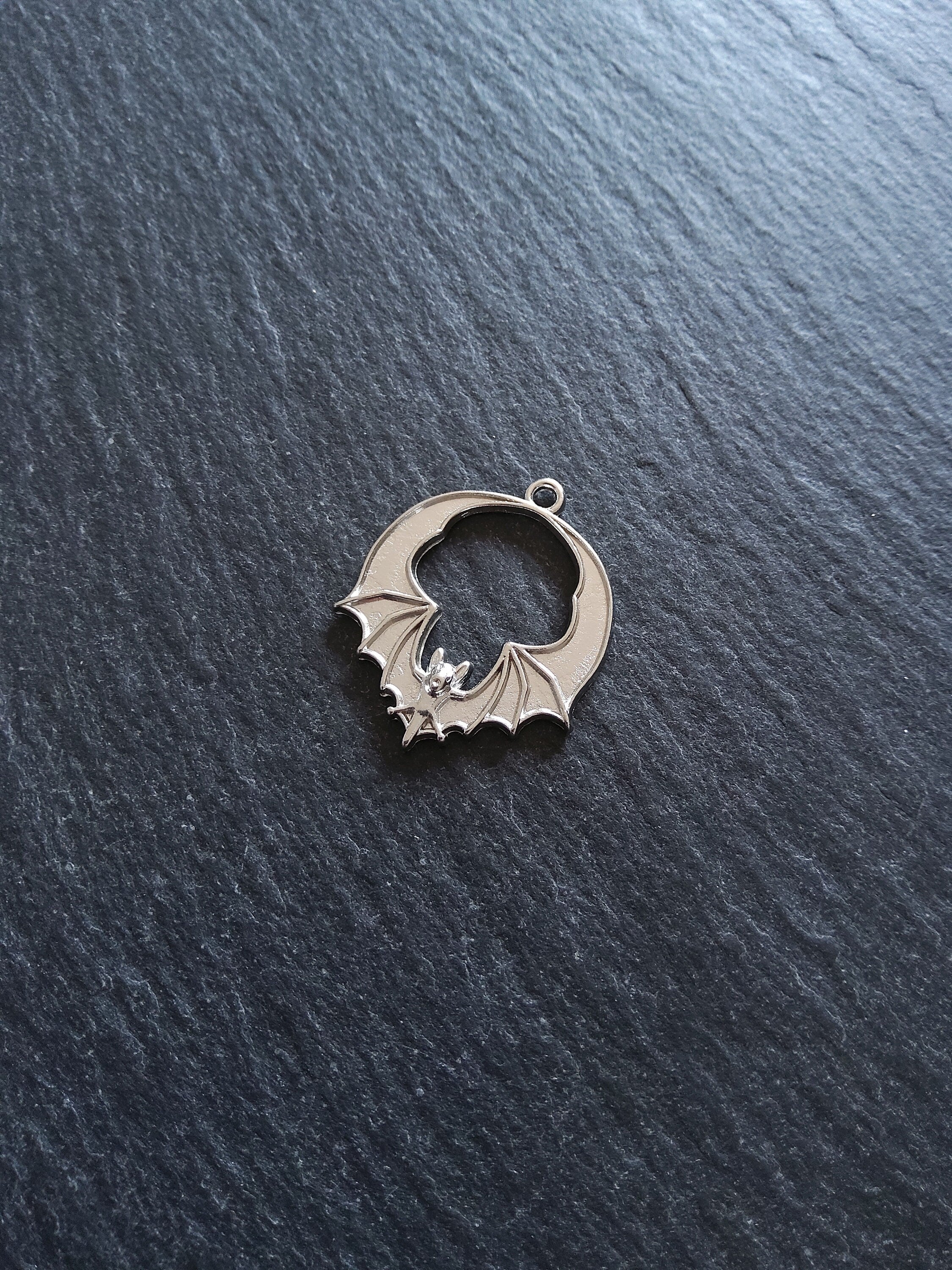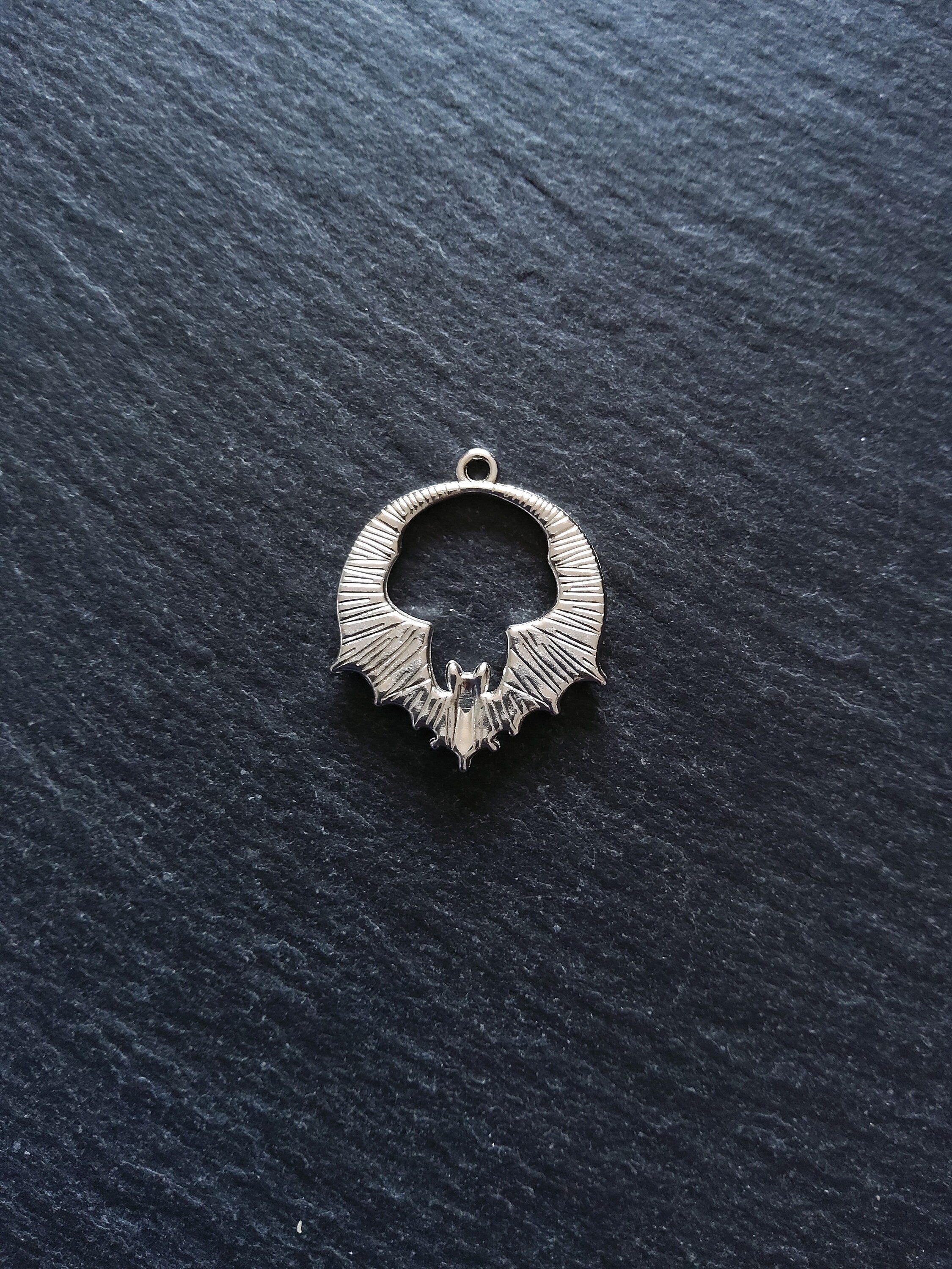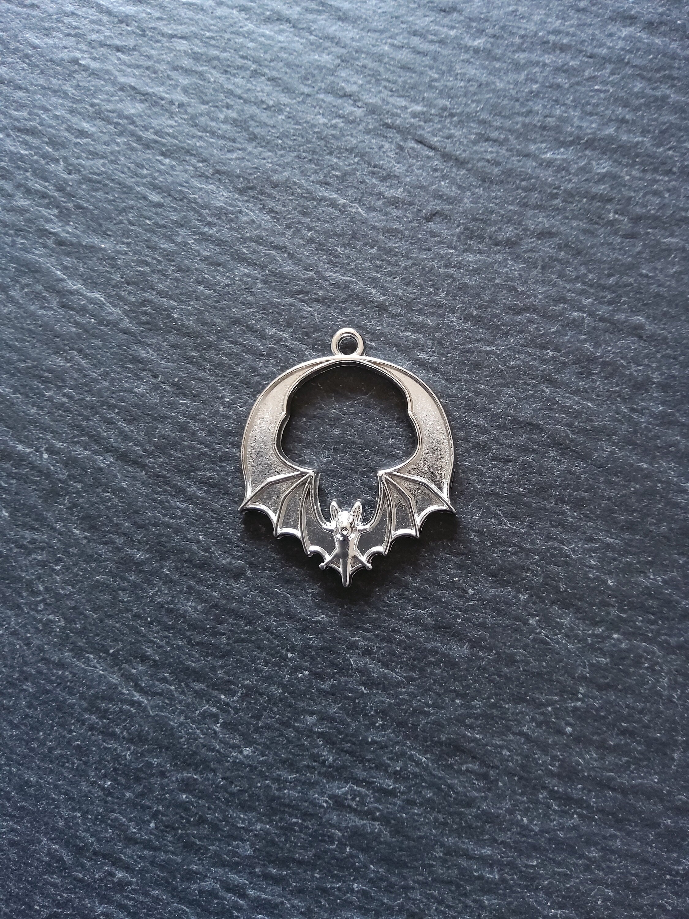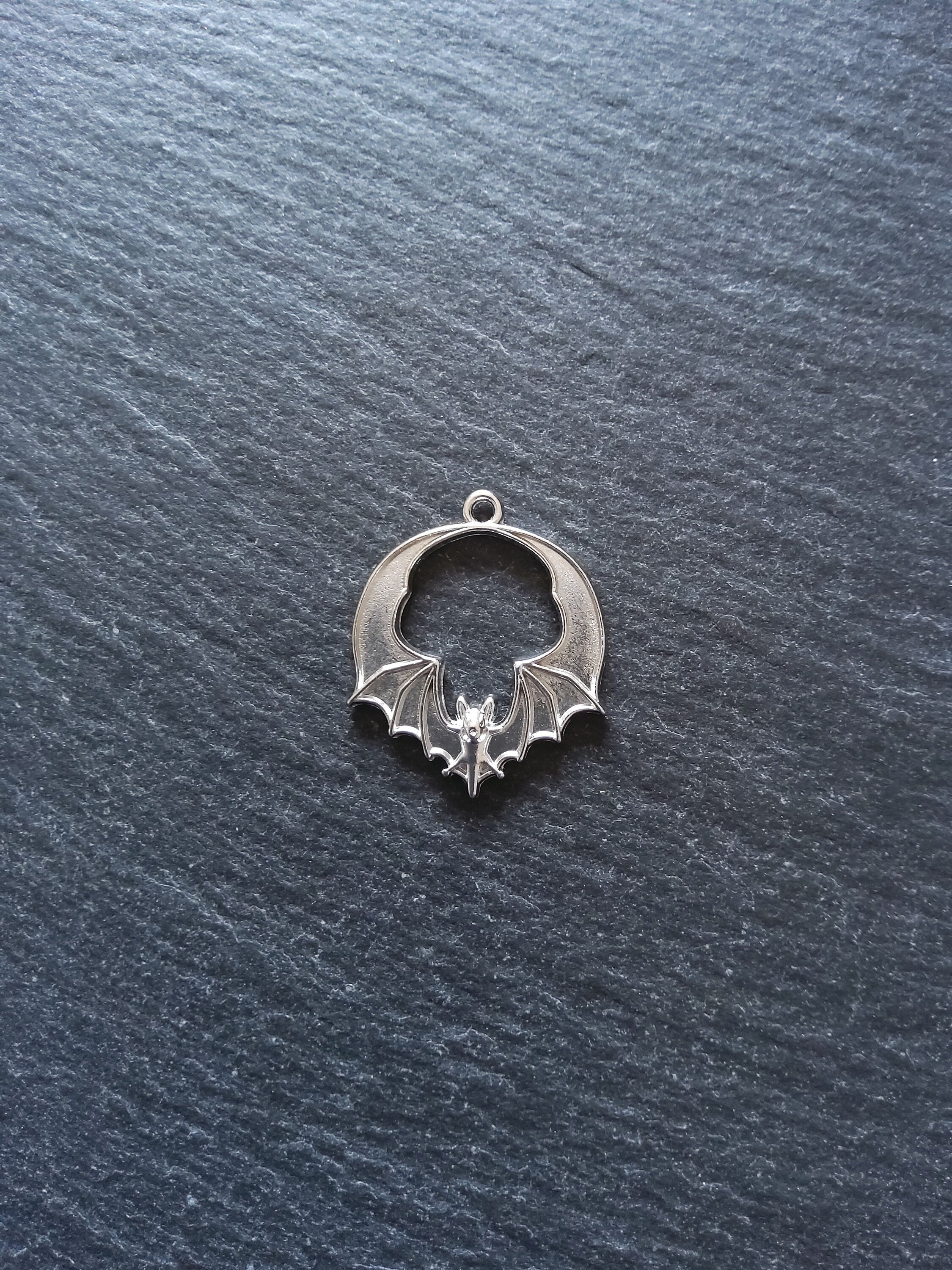 Bat pendants in antique silver tone zinc metal alloy.