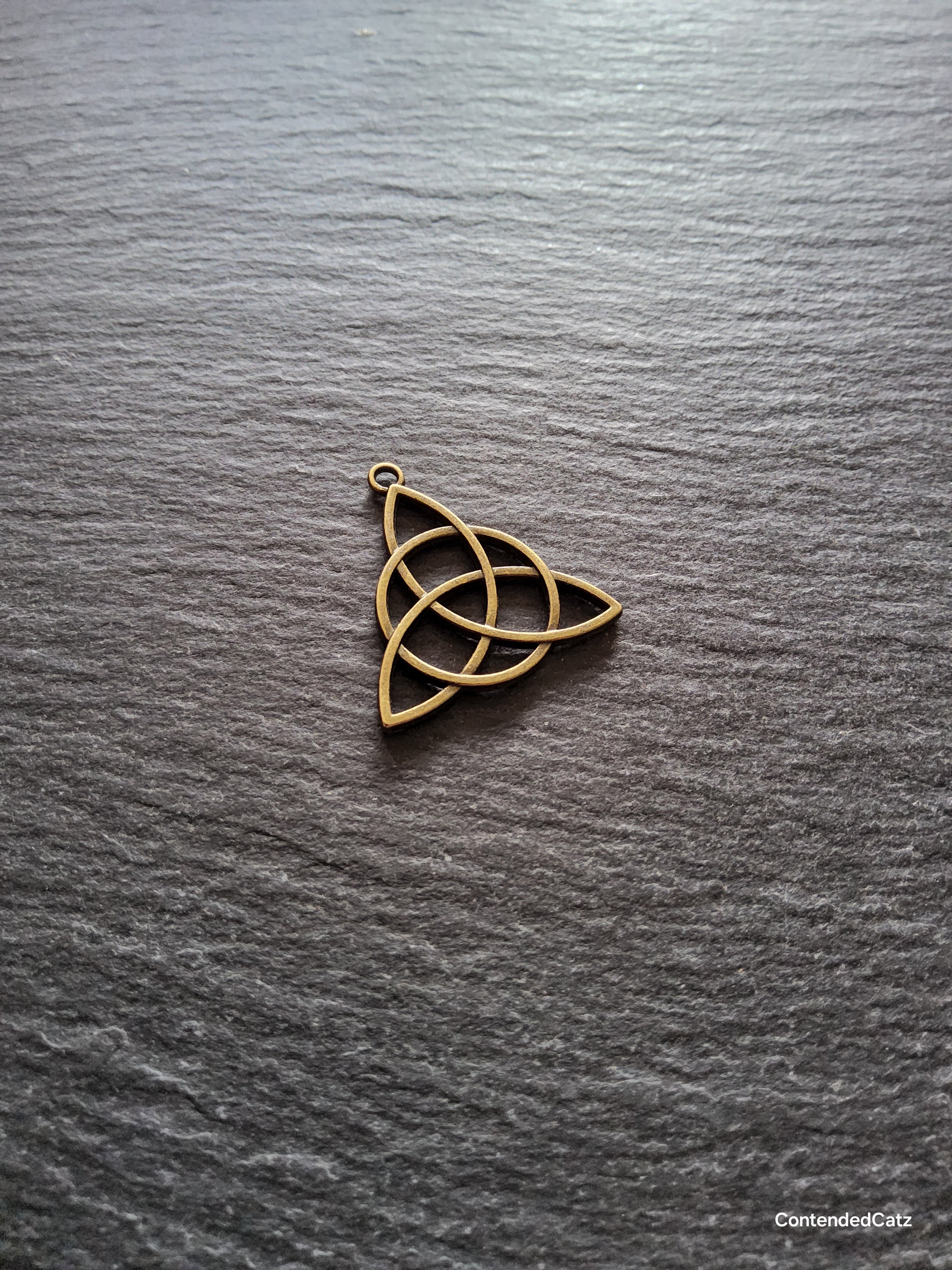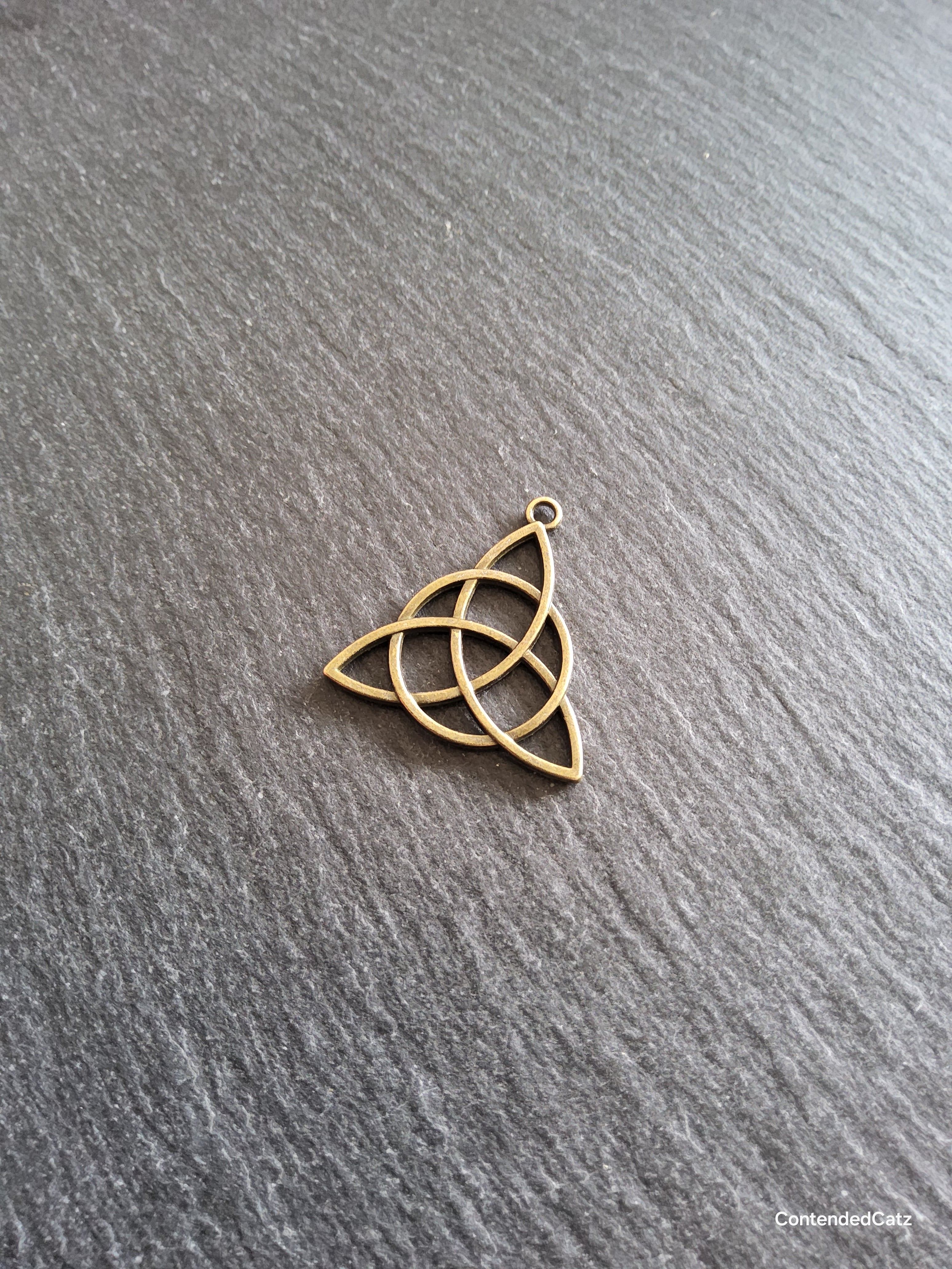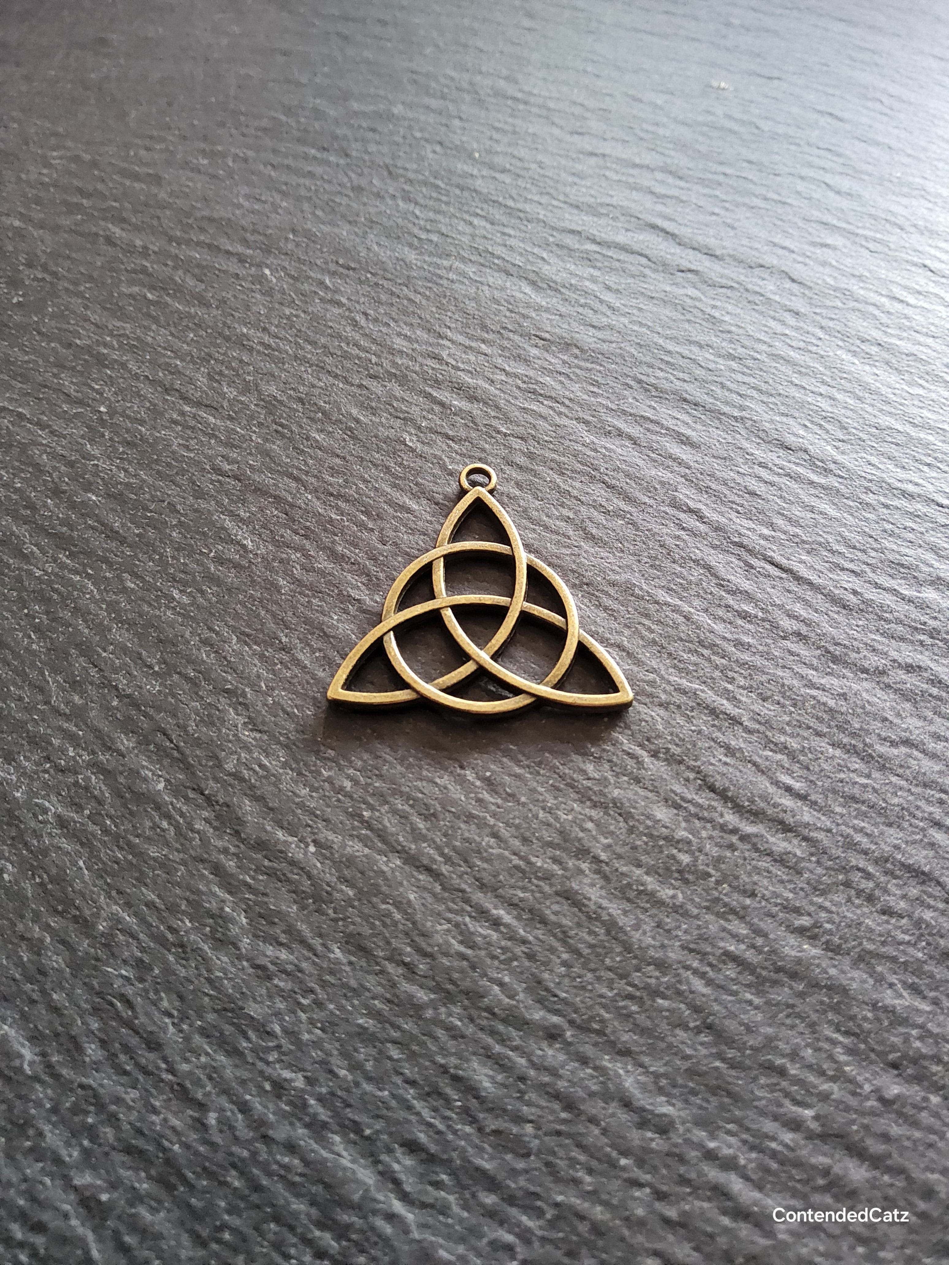 Antique bronze tone metal alloy triquetra Celtic knot charms.