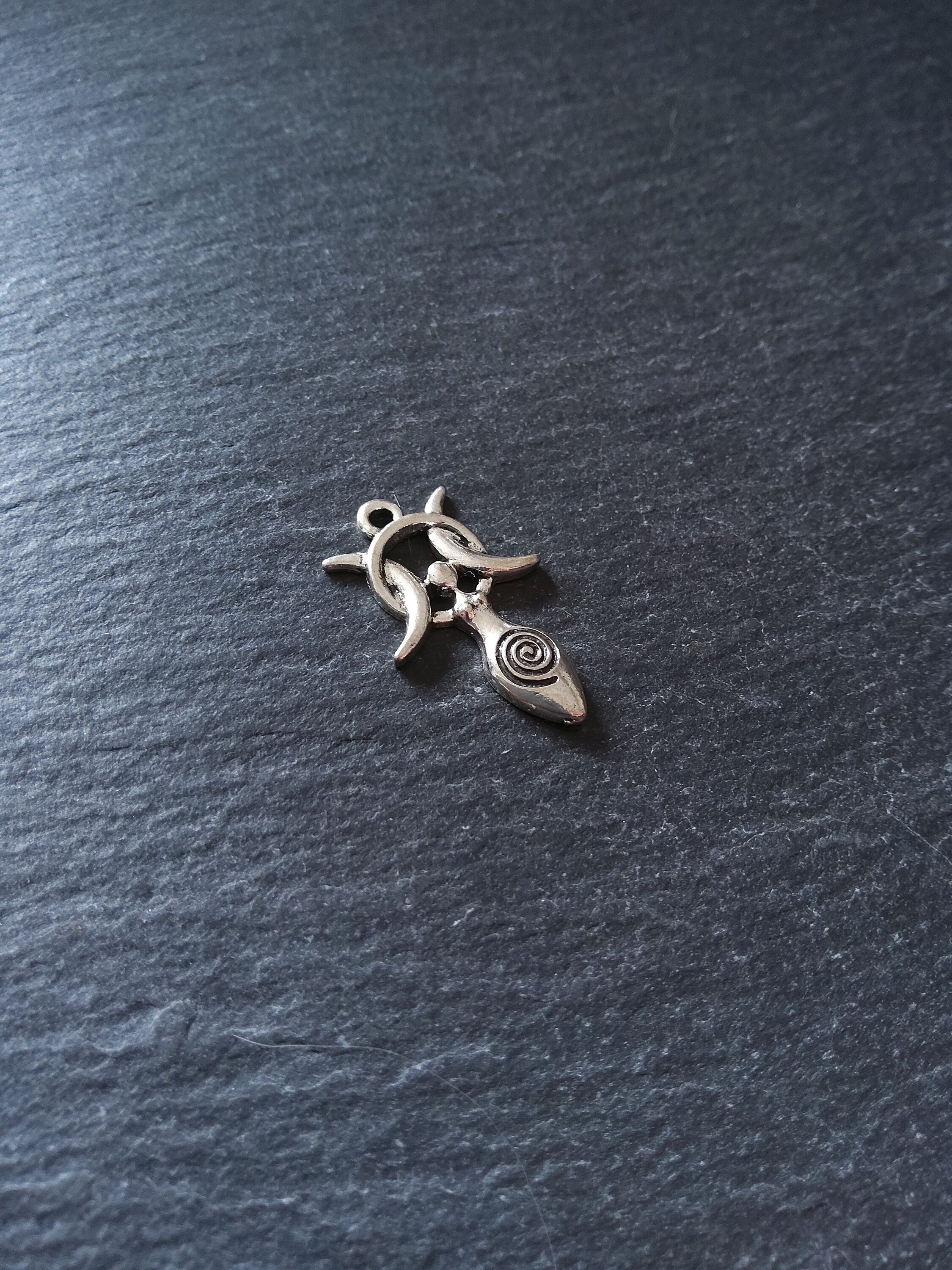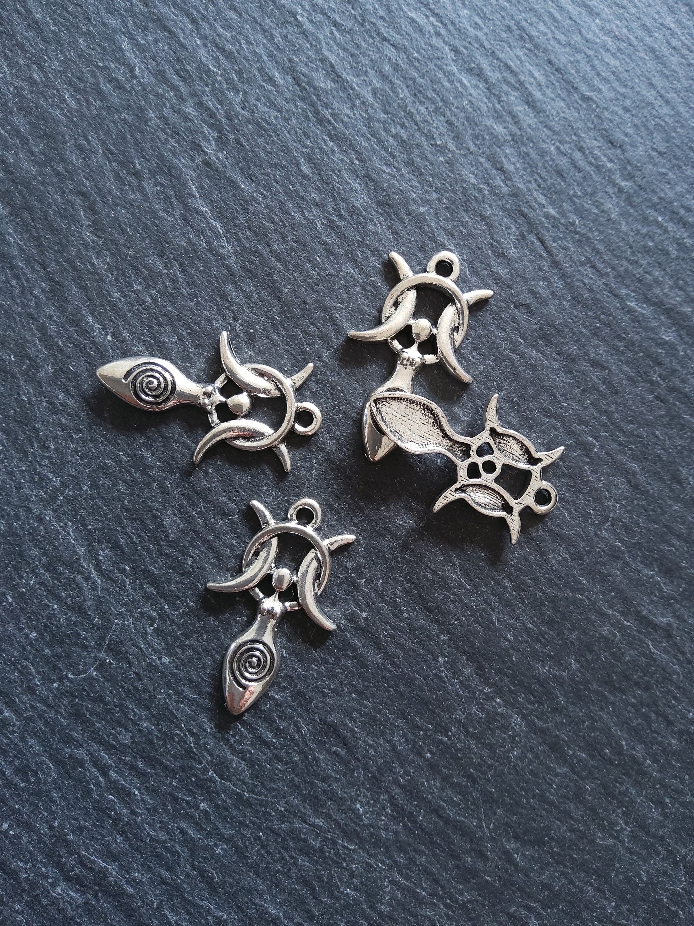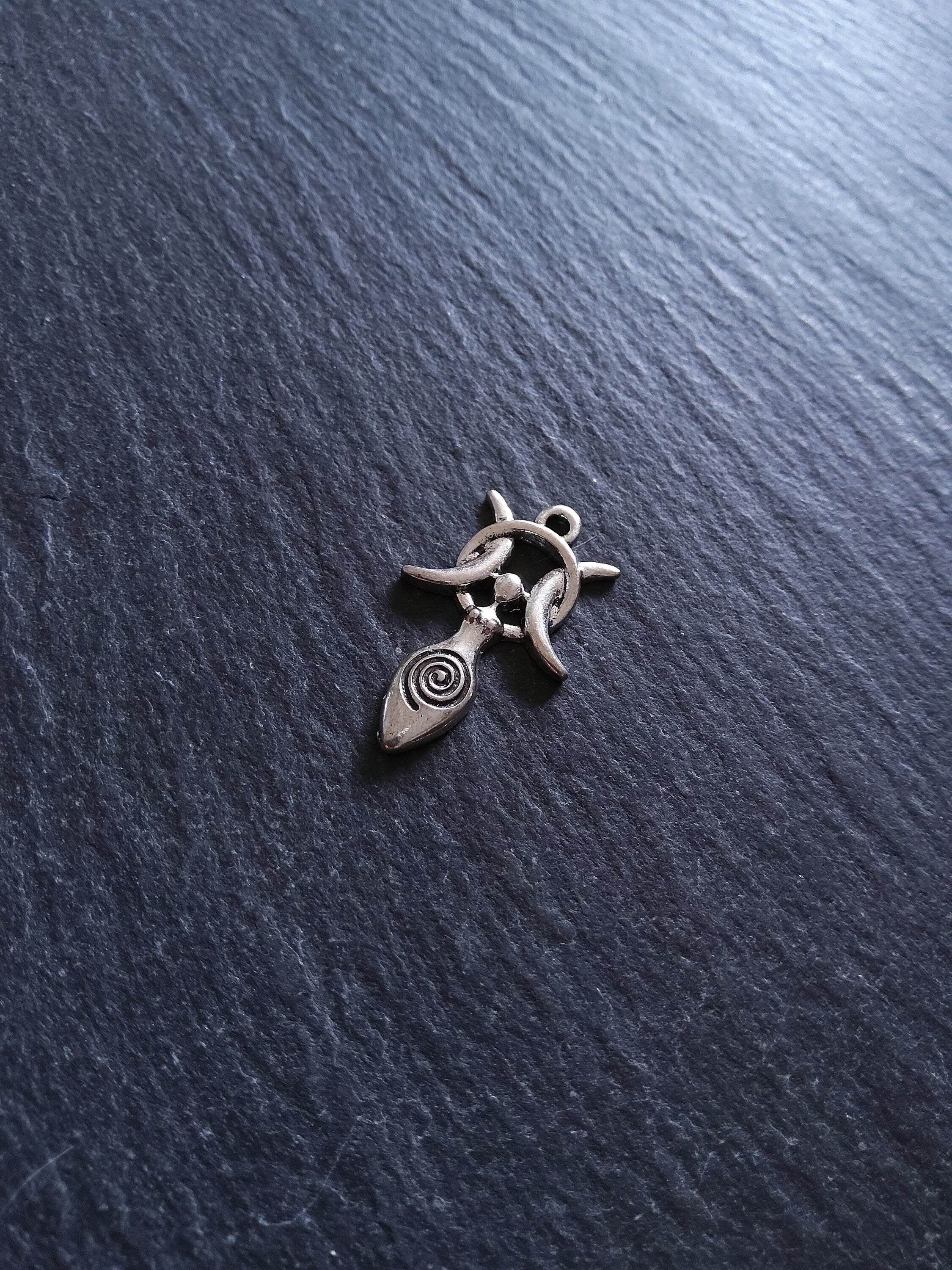 Antique silver tone metal alloy Triple Moon Spiral goddess charms.