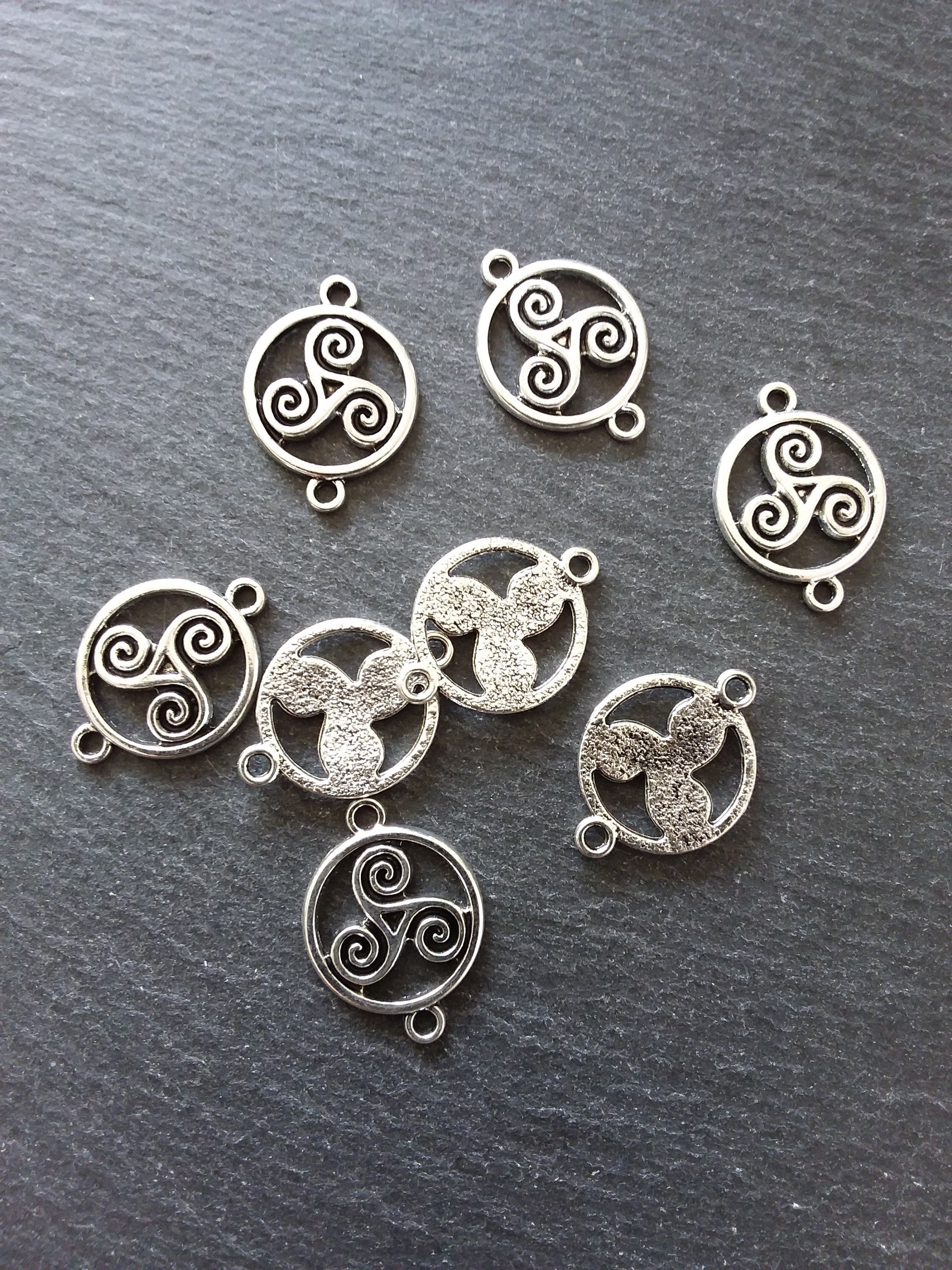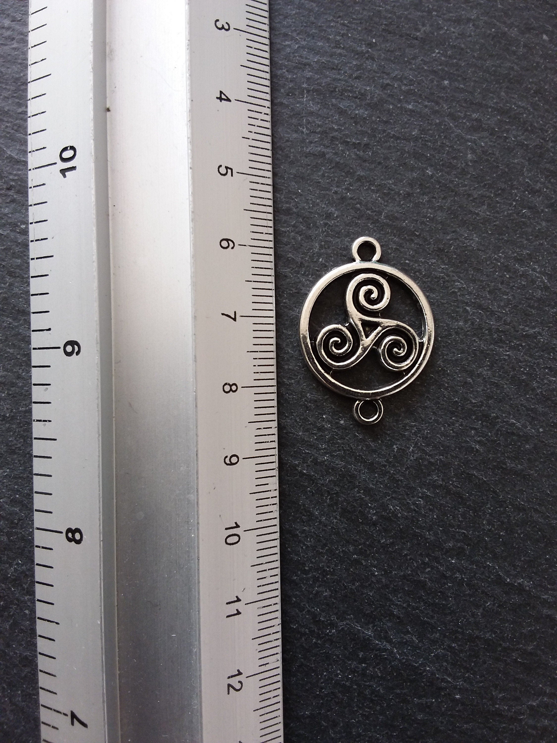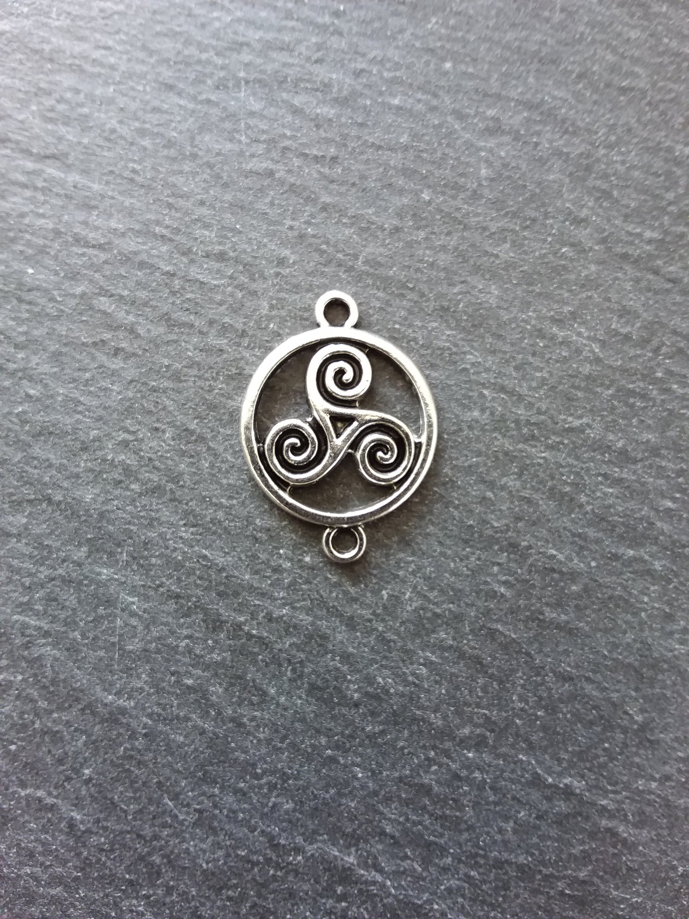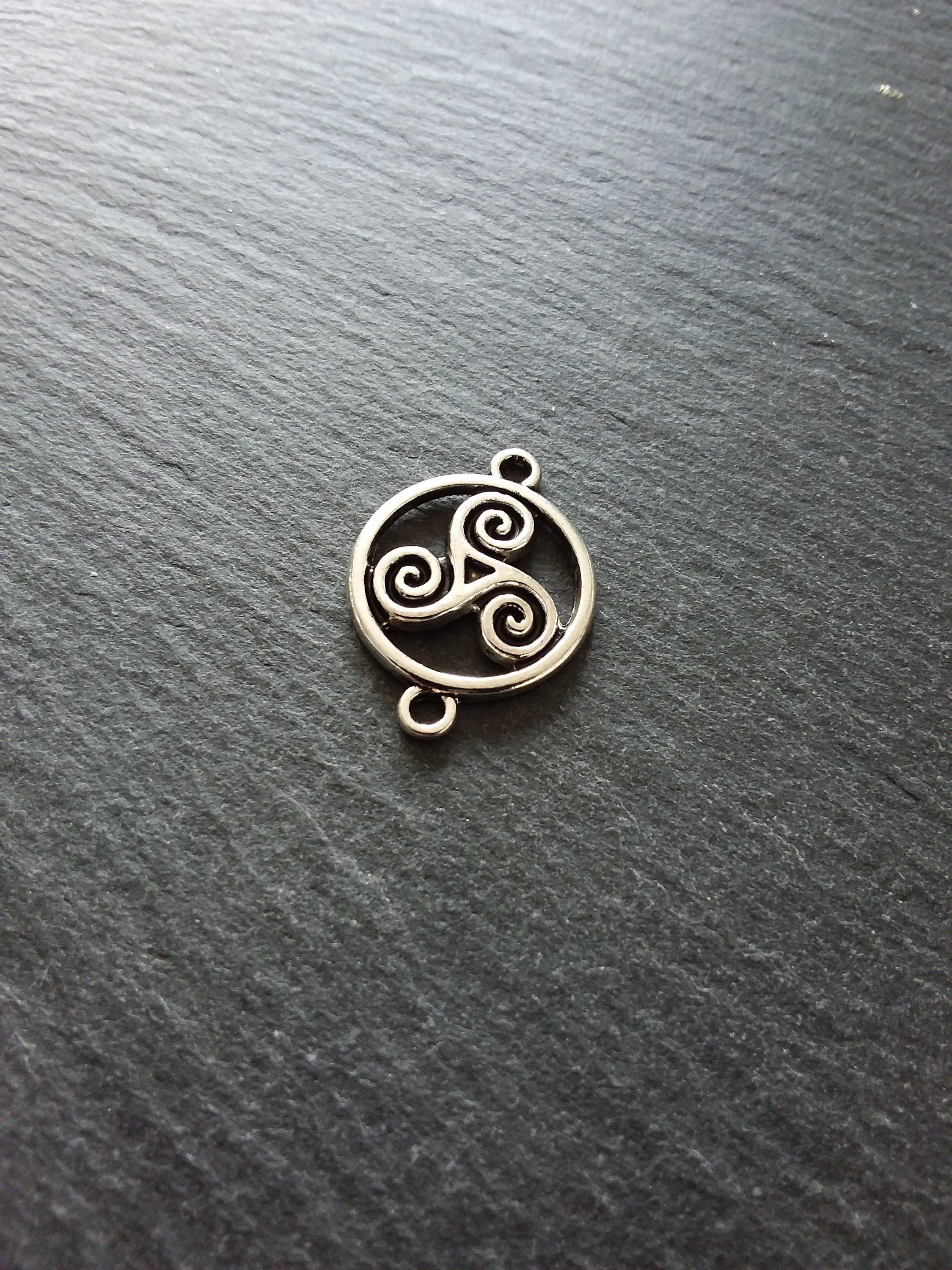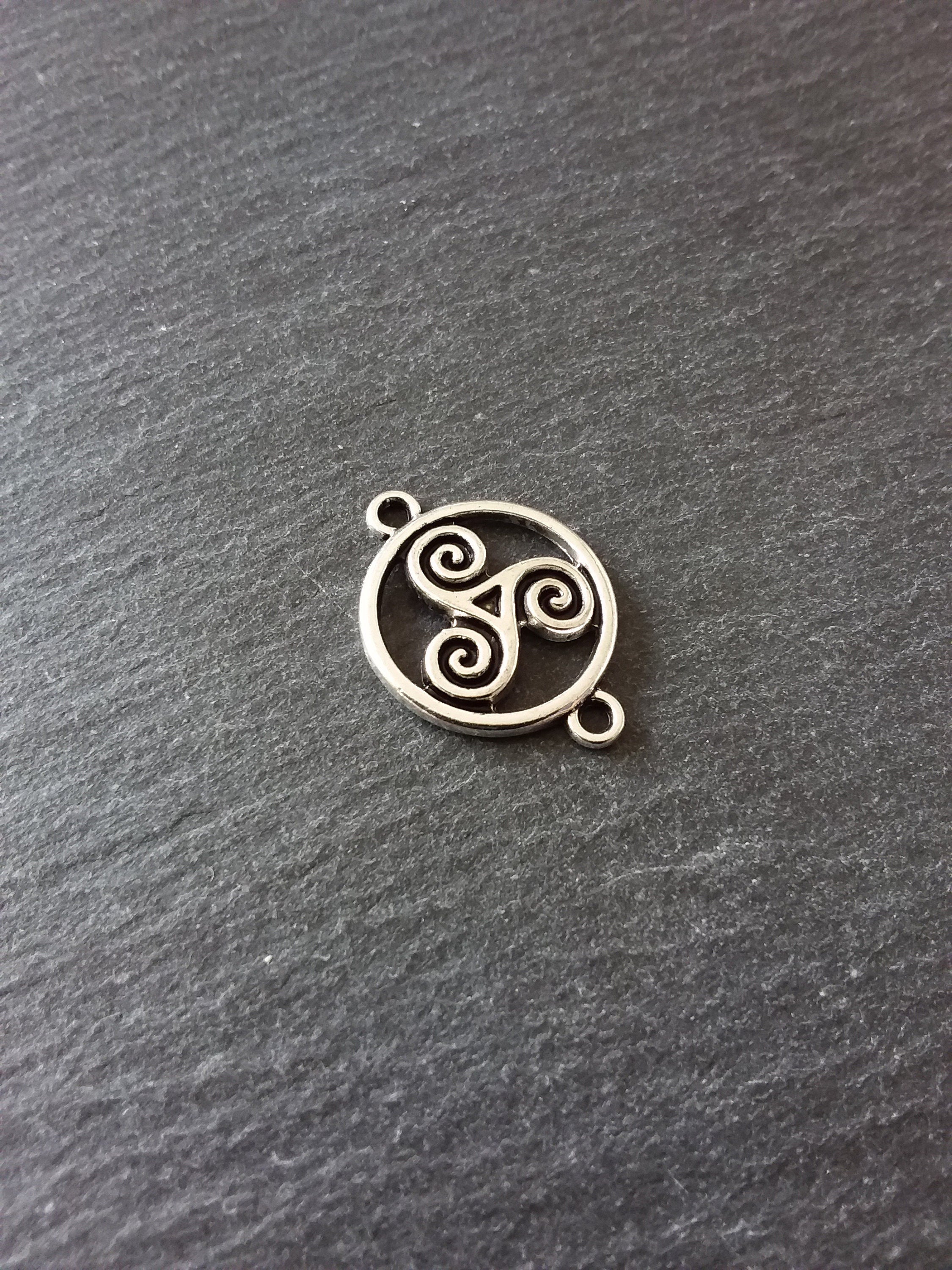 Lovely Antique Silver Tone Round Celtic Triple Spiral or Triskele Connector Charms.