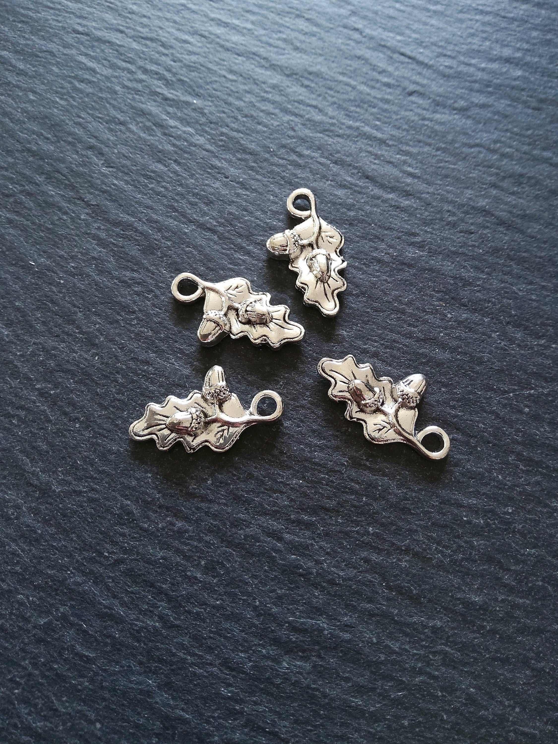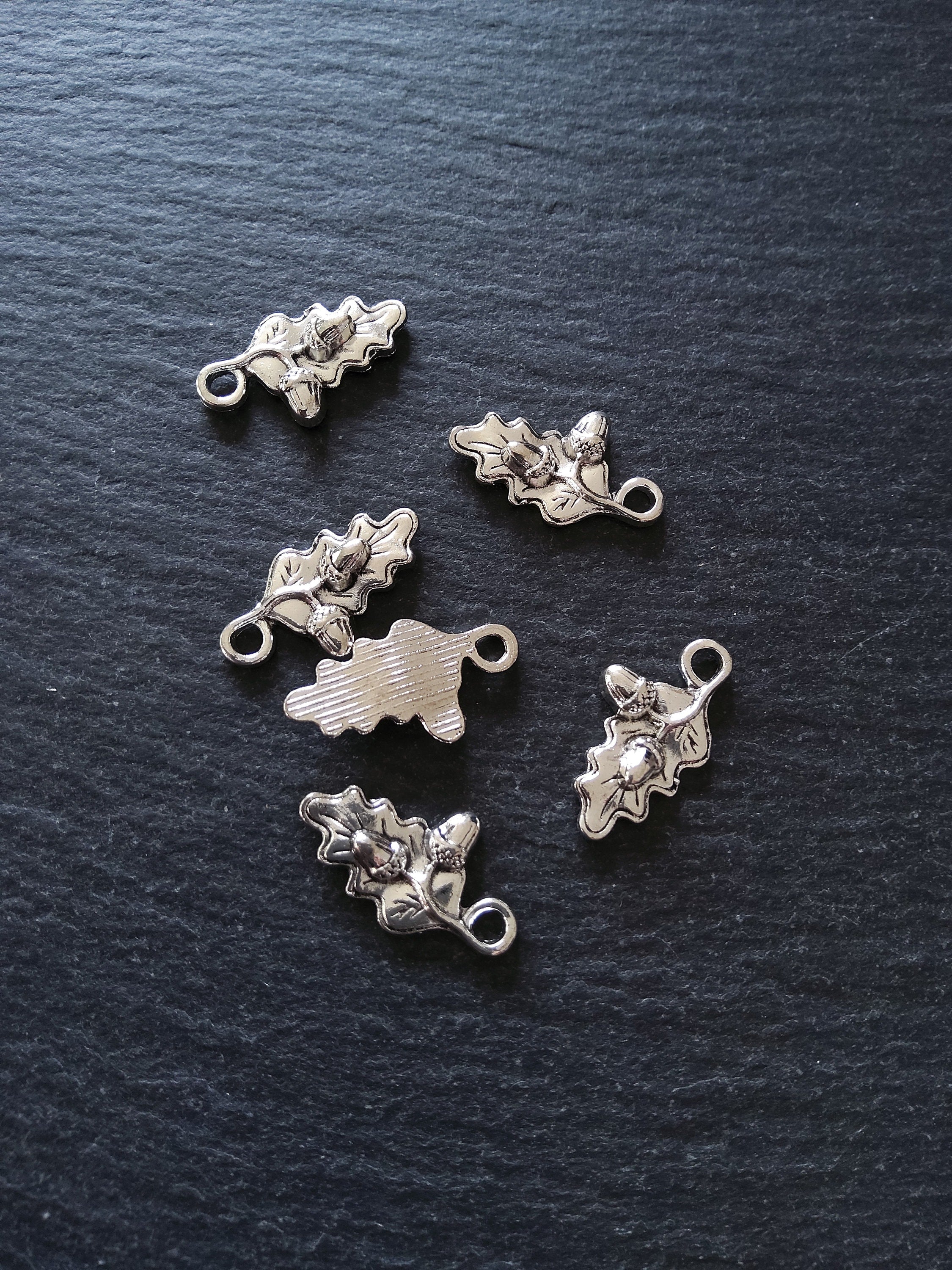 Oak leaf & acorn charms antique silver tone metal alloy.