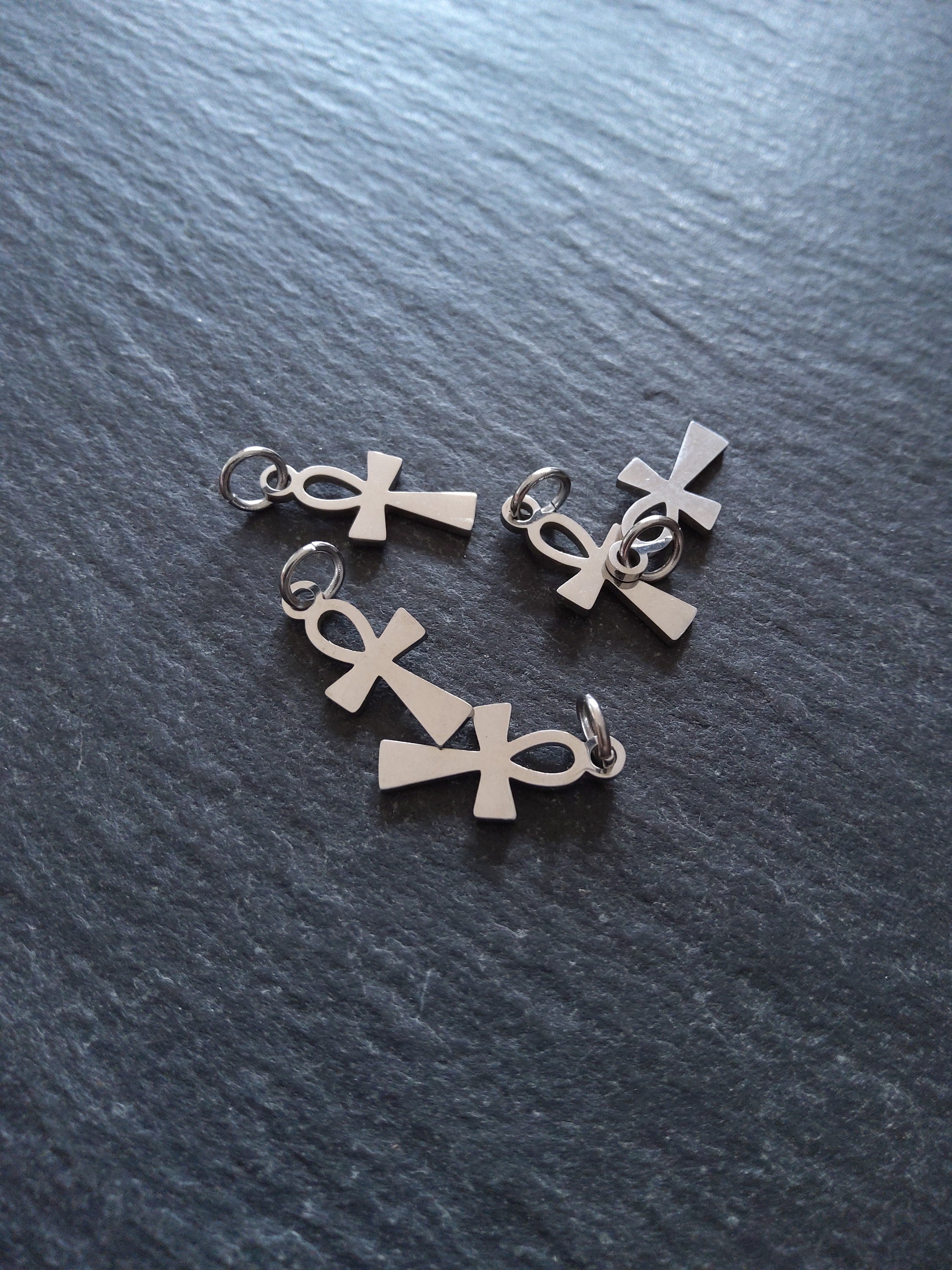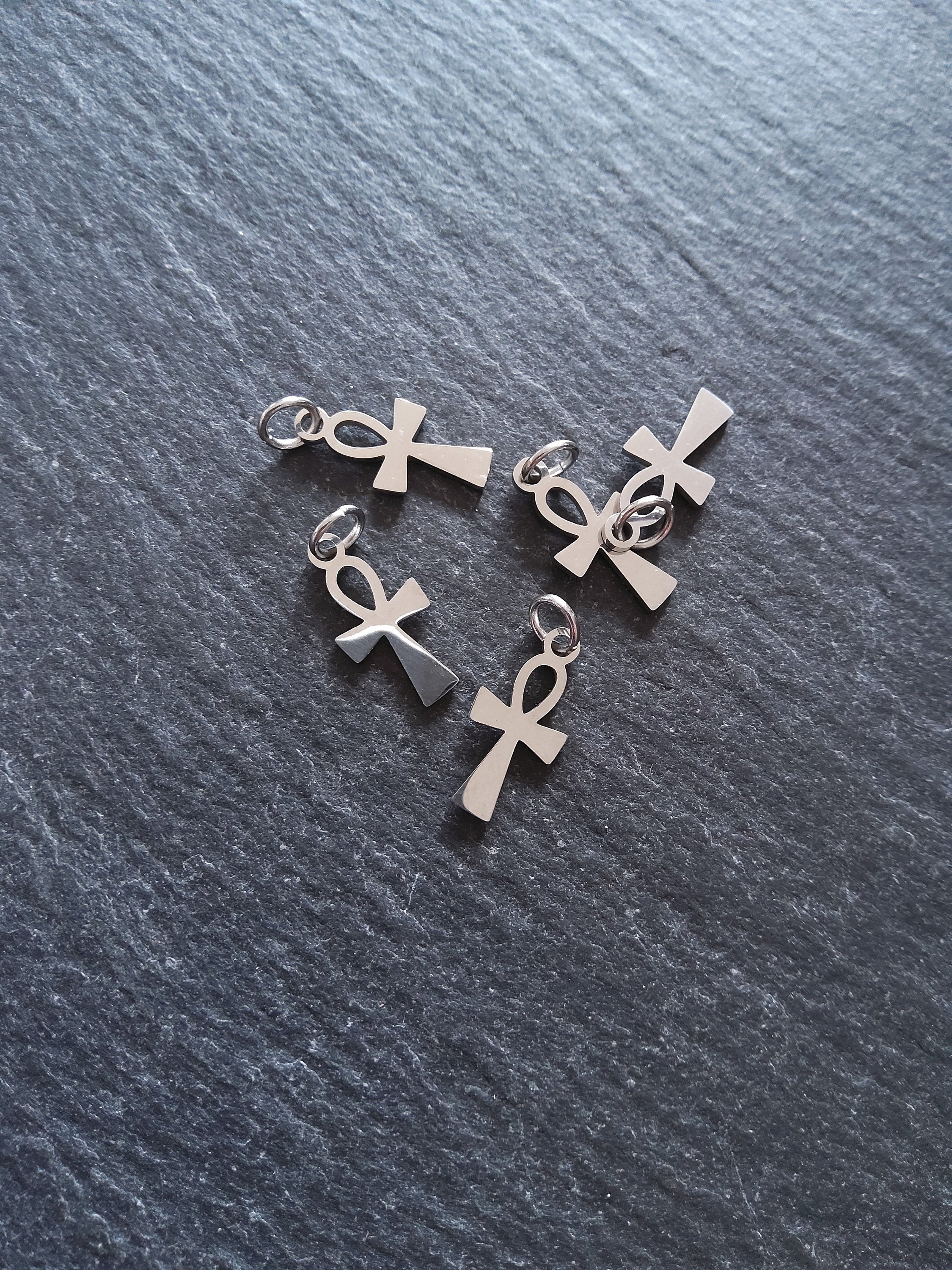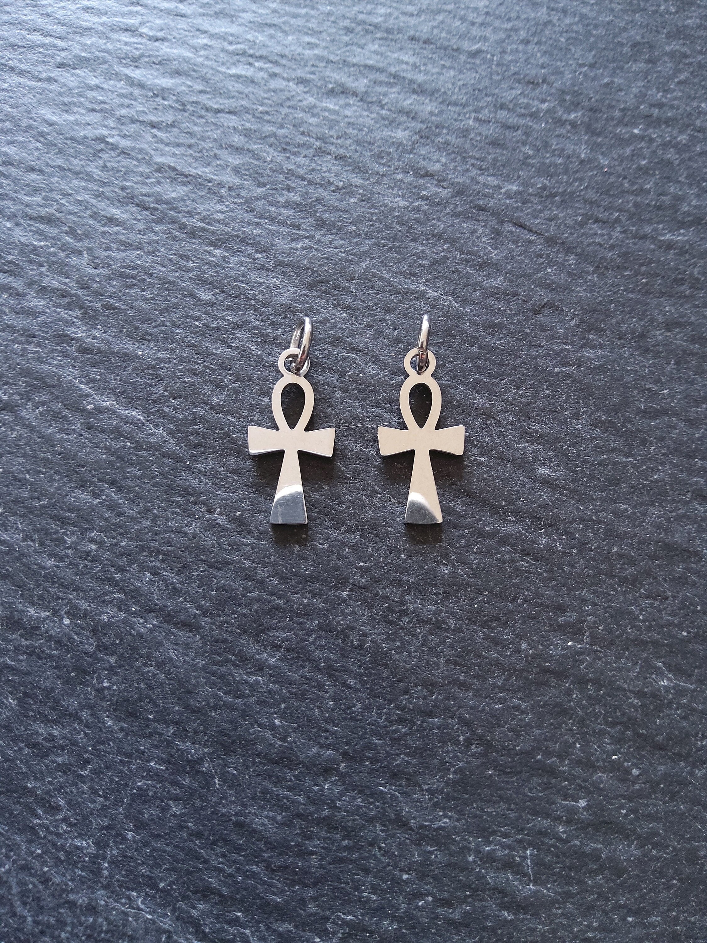 Stainless Steel ancient Egyptian style silver tone Ankh charms with jump ring.