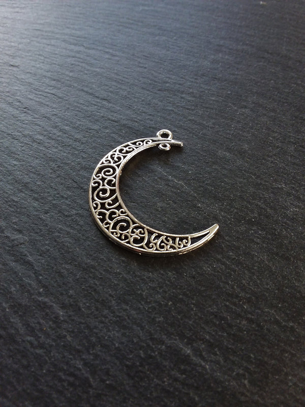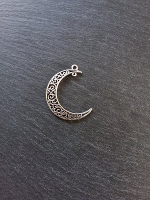 Antique Silver Tone Pierced Metal Alloy Crescent Moon Connector Pendants.