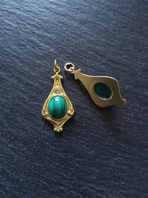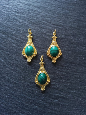 Lovely little elegant gold plated drop pendant with Malachite cabochon.