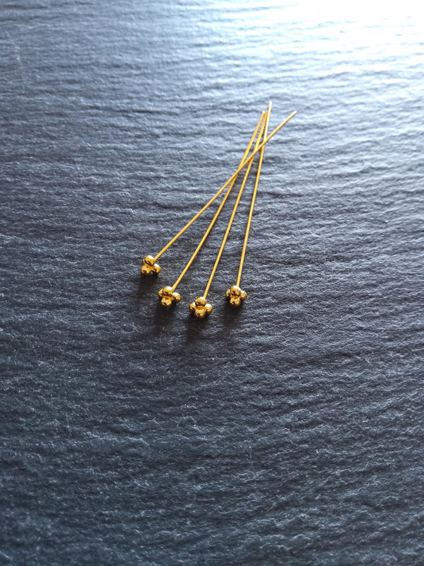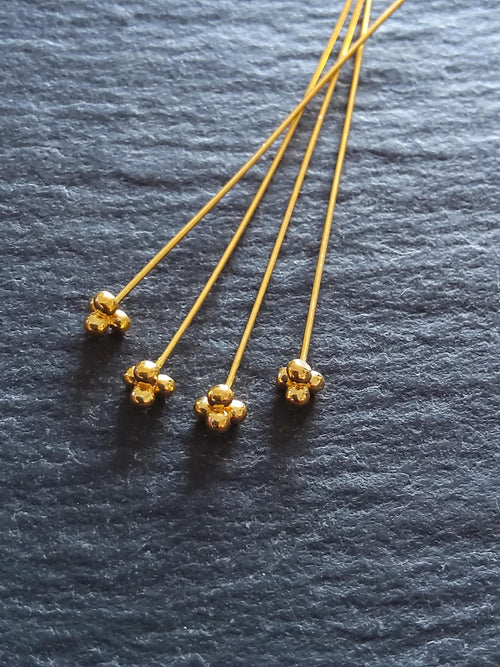 Handmade 4 ball headpins in solid Balinese 925 sterling silver with genuine 22K Gold.