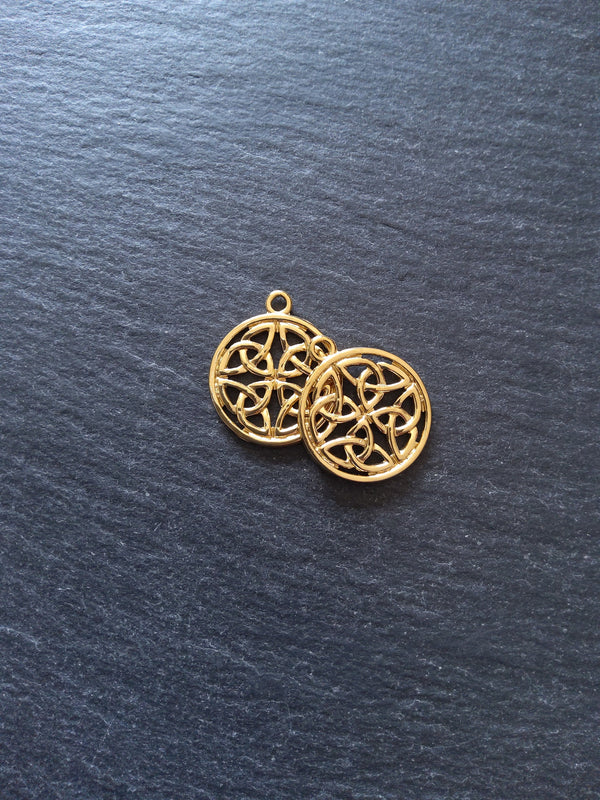 Genuine 18K Gold ion plated grade 201 stainless steel round Celtic Dara infinity knot charms.