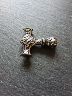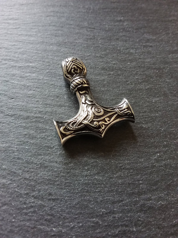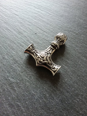 In Norse mythology, Mjölnir is the hammer of Thor, a major Norse god associated with thunder. Mjölnir is depicted in Norse mythology as one of the most fearsome weapons, capable of levelling mountains.