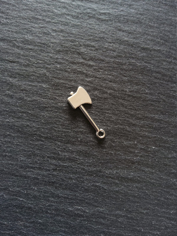 Solid axe charms in an antique silver tone zinc metal alloy.