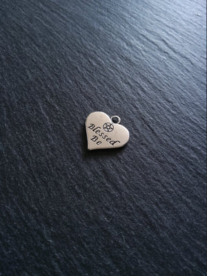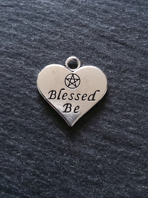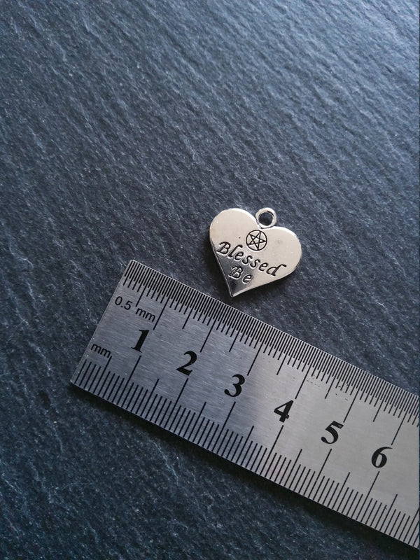 Heart Shaped Charms with 'Blessed Be' & Pentacle. Antique Silver Tone.