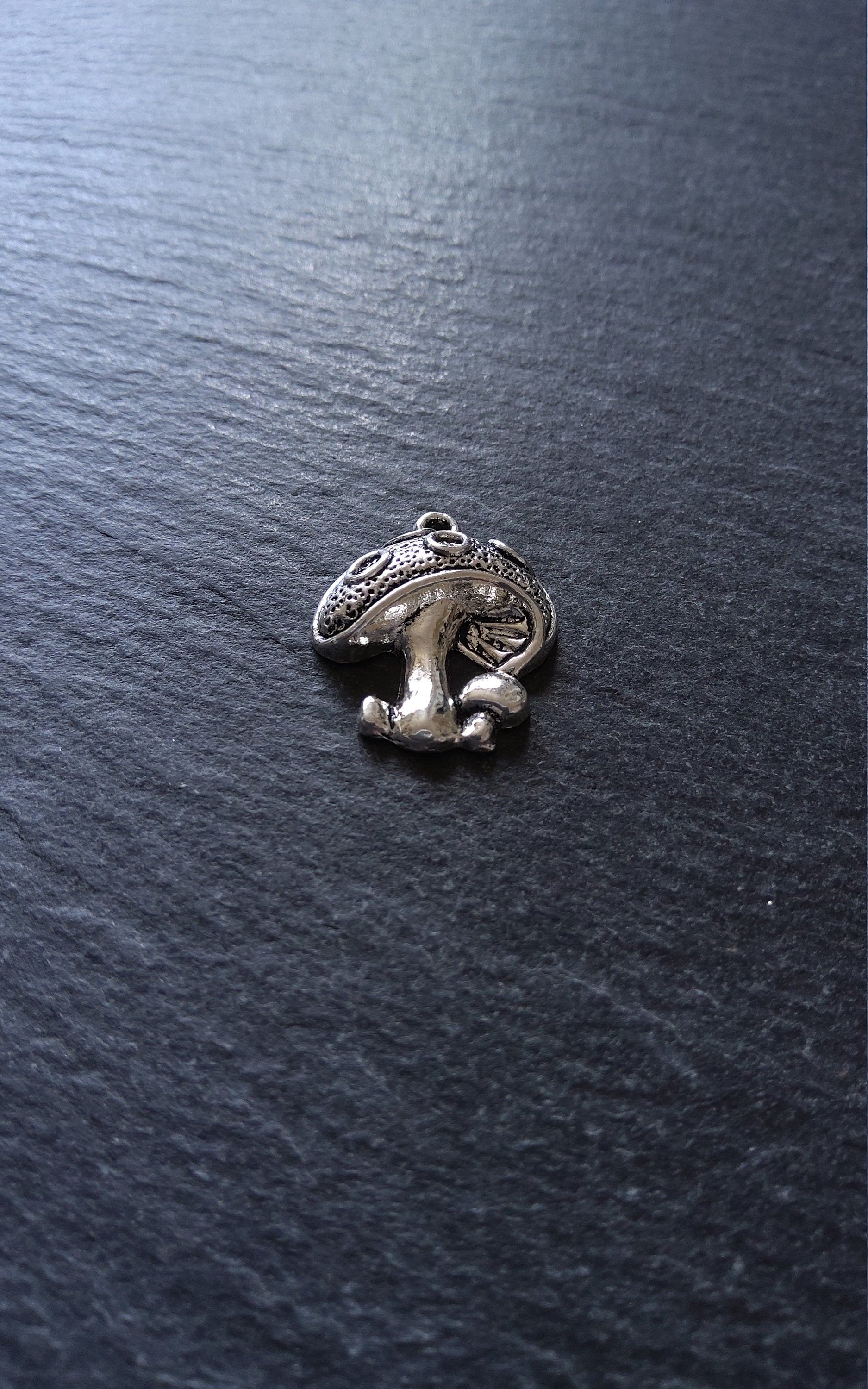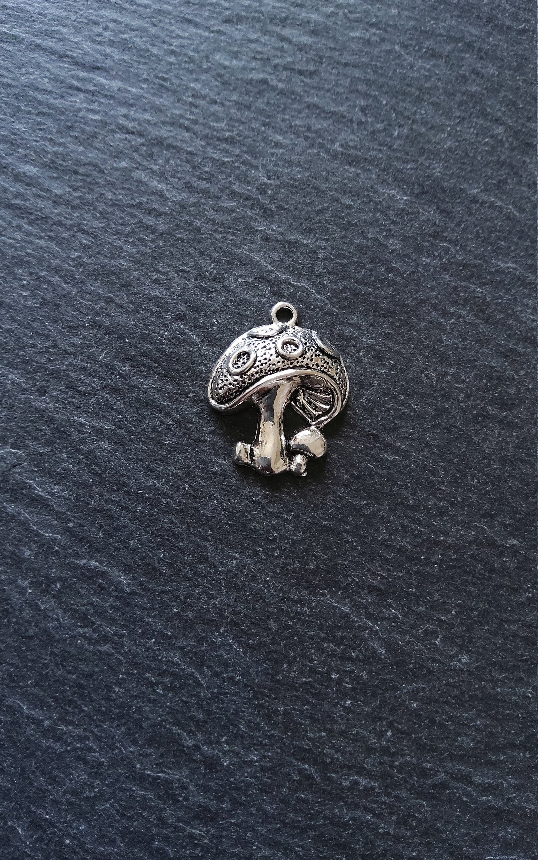 Cute Spotted Mushroom Toadstool Charms in an antique silver tone zinc metal alloy.