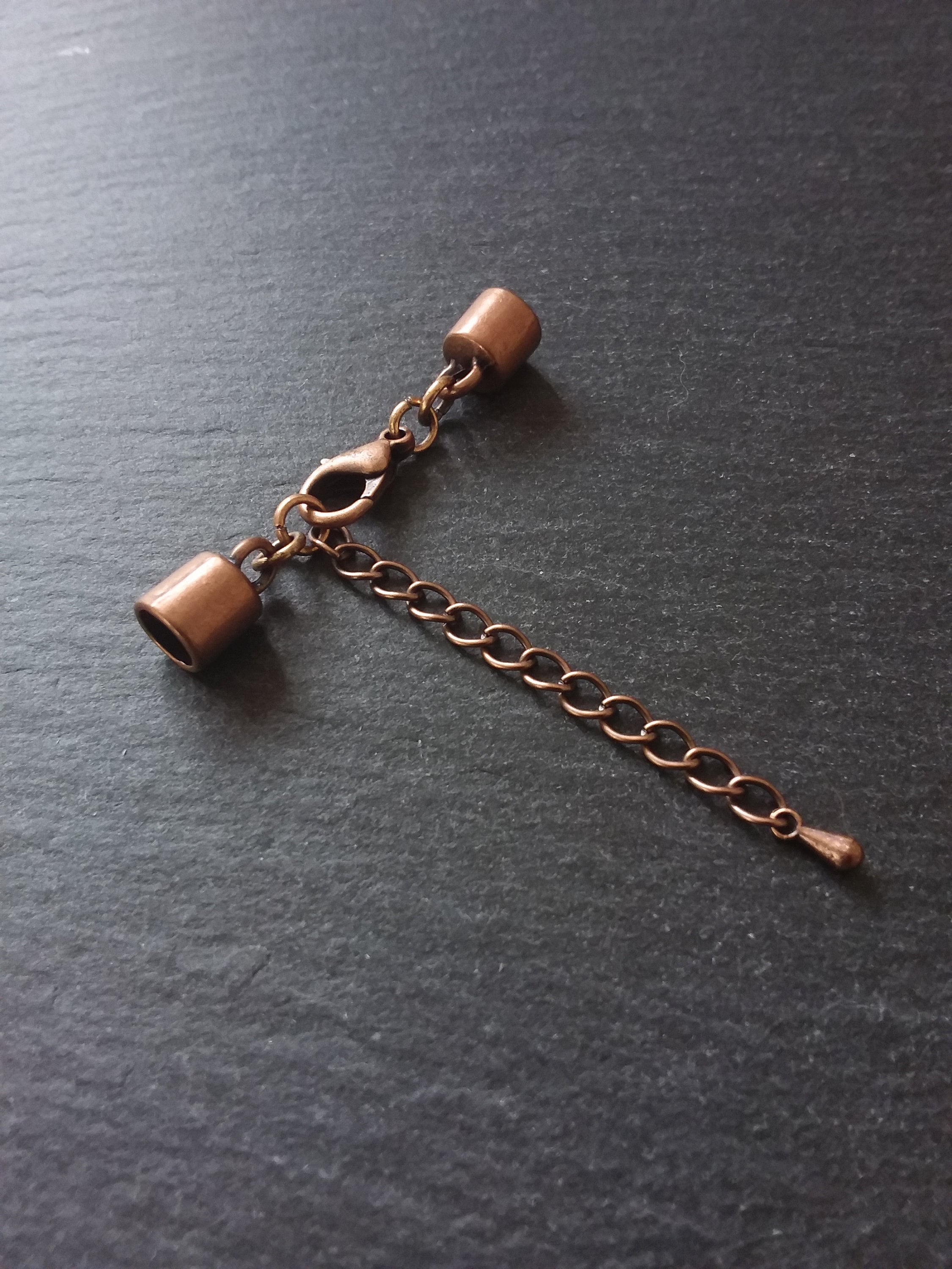 When ordering, I suggest adding 0.5mm on to the width of your cord when measuring for end caps, so that there is space for the glue and in case the cord varies very slightly in width.