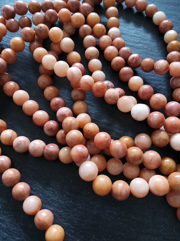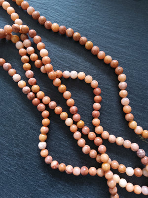 Strand of Round Natural Polished Dark 'Pink' Aventurine Gemstone Beads. These are a beautiful natural pale to dark peach in colour.