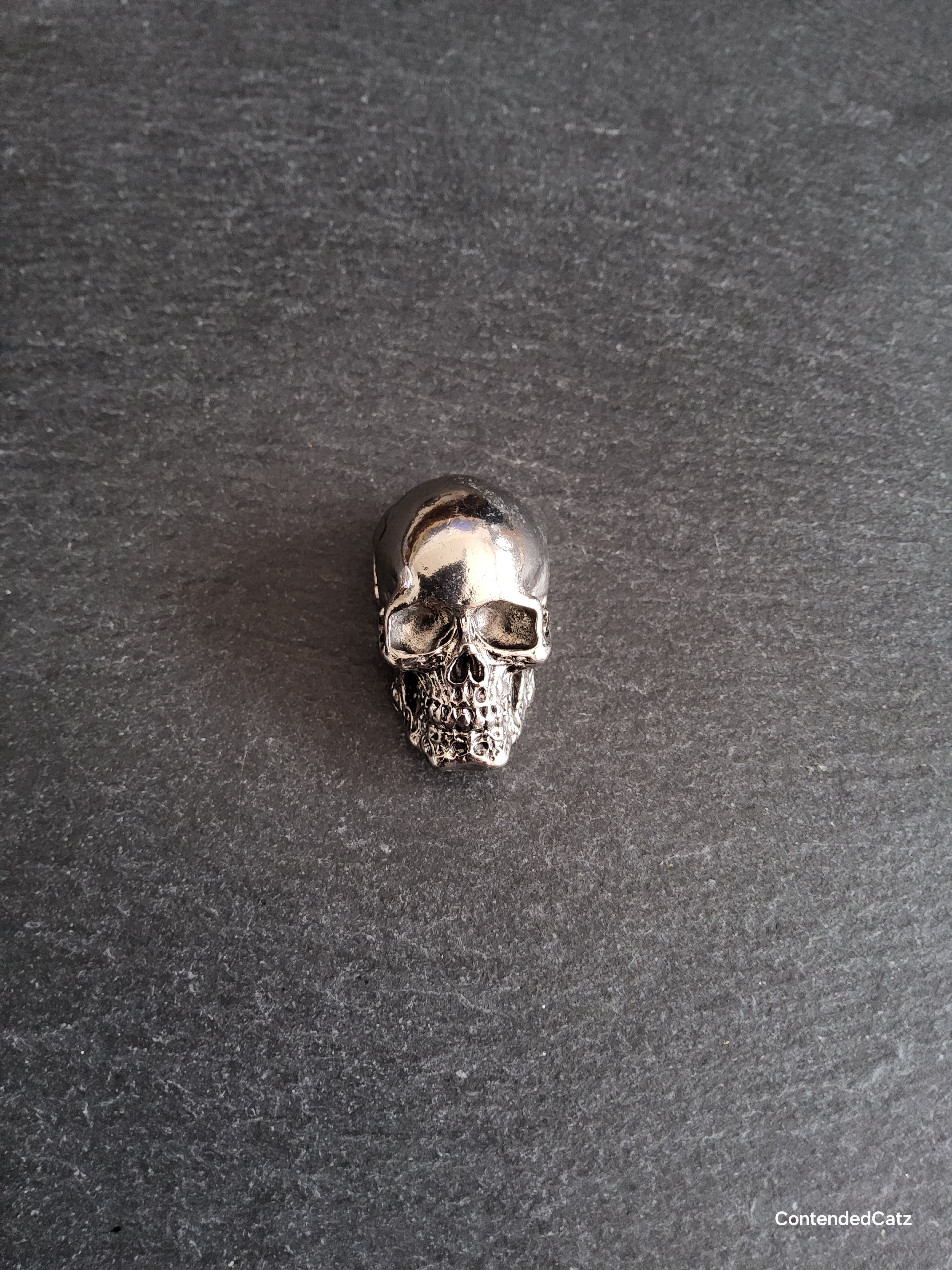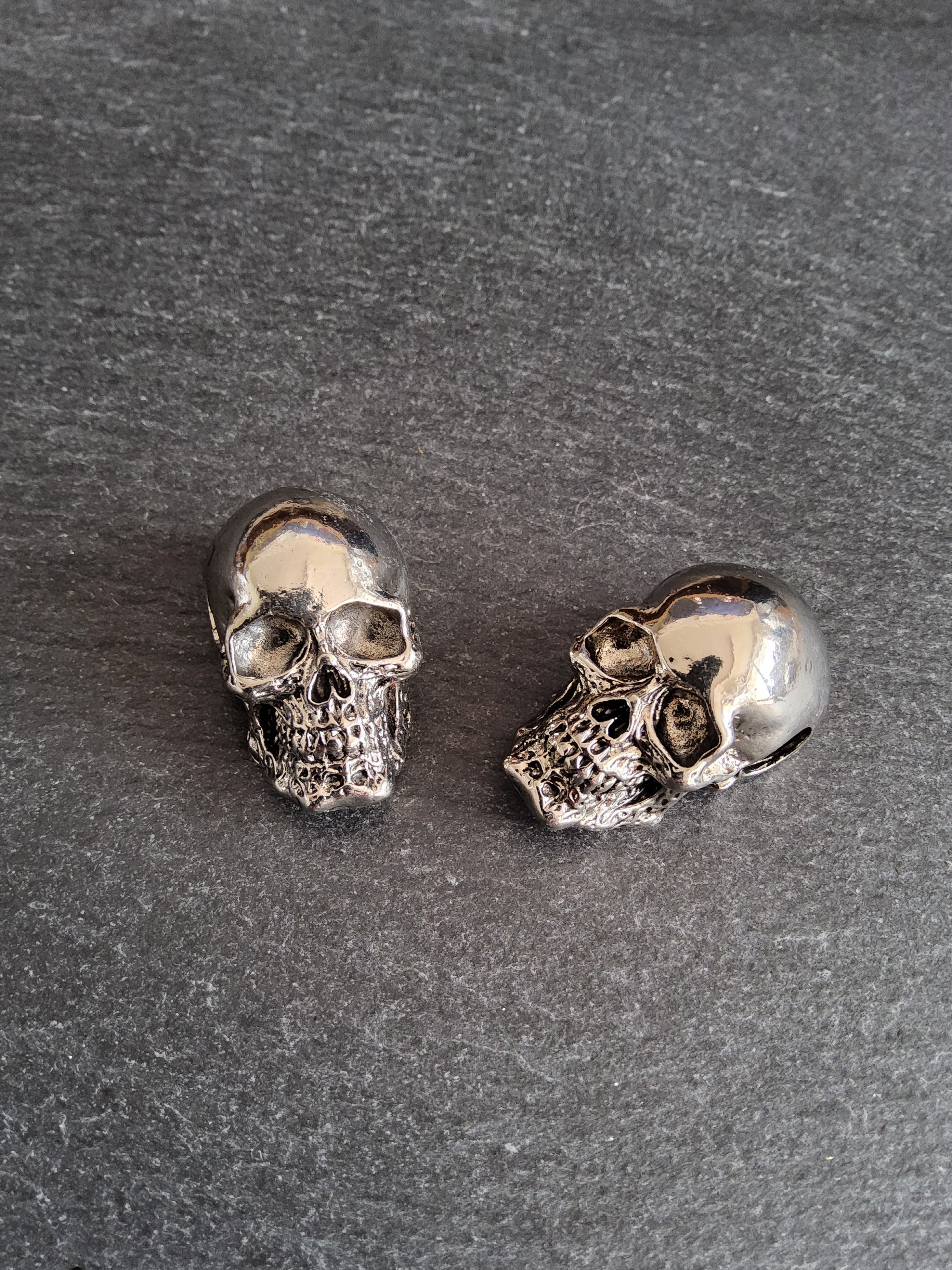 Life-like, heavy & chunky, antique silver tone metal alloy 3D skull pendants.