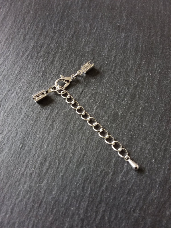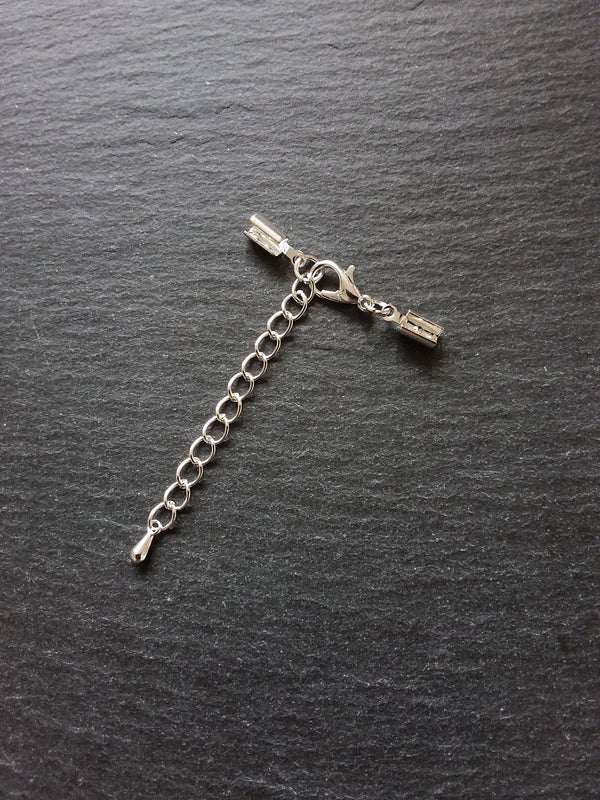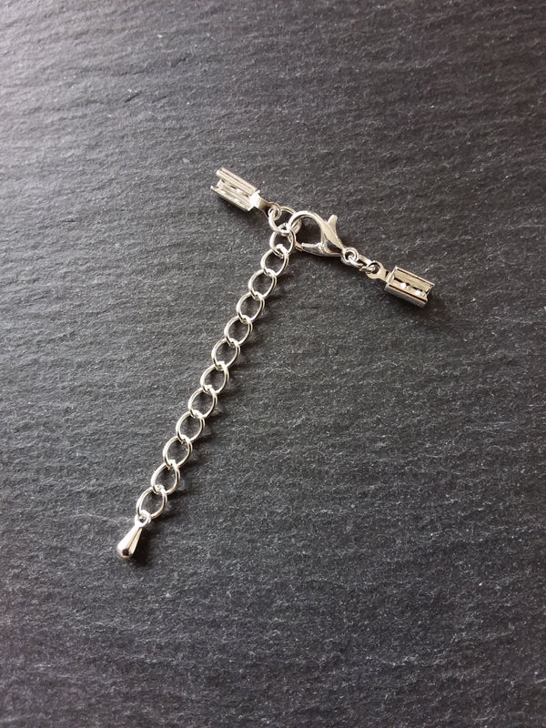 Quality bright silver plated (not genuine silver) metal alloy crimp end findings for use when making rounded cord necklaces and bracelets.