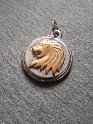 316 Surgical Stainless Steel Pendant Charm with stylish gold tone raised lion head design.