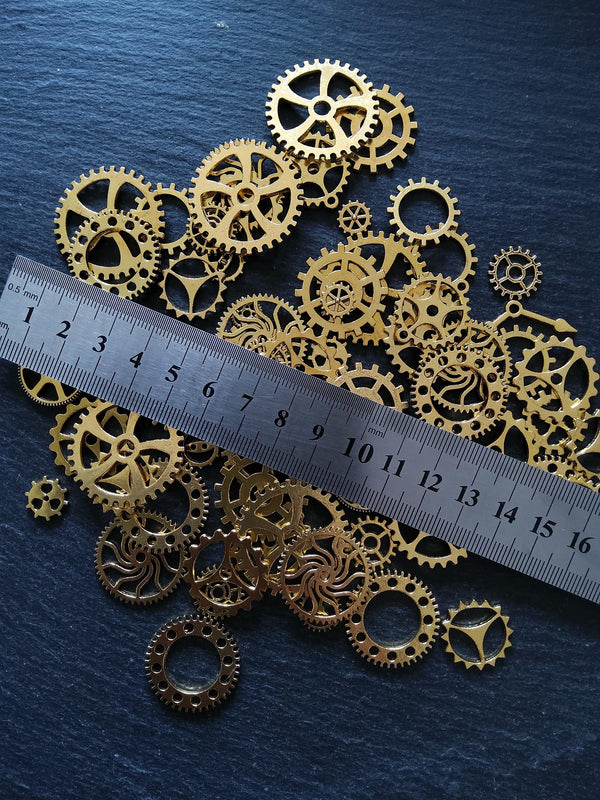 Antique gold tone metal alloy Steampunk clock gear charms.