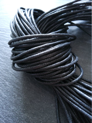 Quality Round Black Woven Cotton Cord (waxed using corn wax)